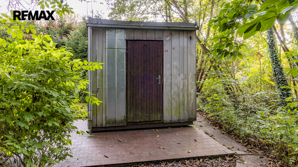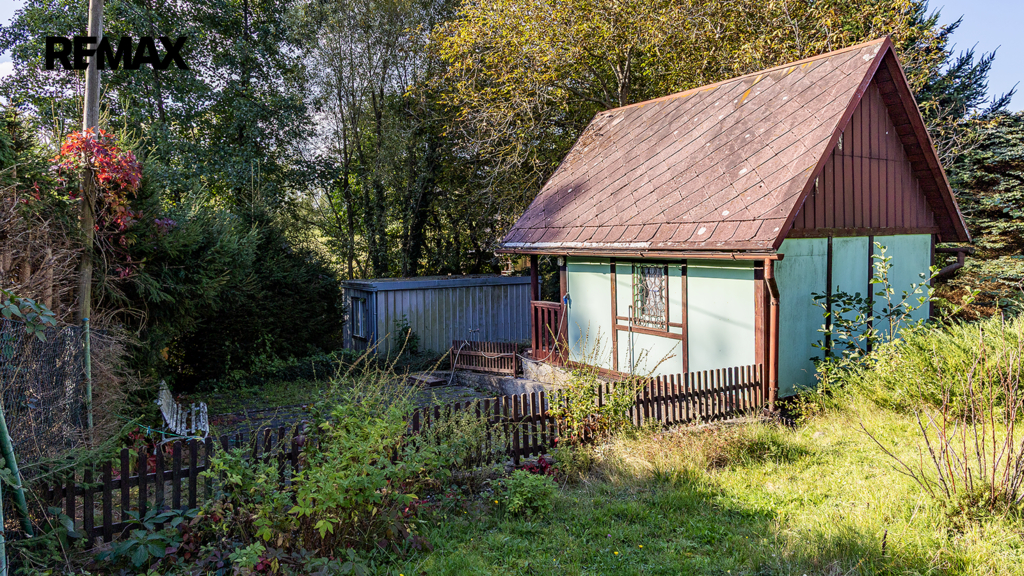 Důležité upozornění: tato chata není zapsaná v katastru nemovitostí jako stavba. To znamená, že ji vnímáme spíše jako dočasný objekt (provizorní zázemí), nikoliv jako plnohodnotnou rekreační stavbu. Na okraji pozemku je dále umístěn kontejner sloužící jako sklad. Ideální na materiál, nářadí, zahradní techniku atd. V praxi to znamená, že když začnete stavět, nemusíte první den řešit, kam s věcmi. Máte to připravené.