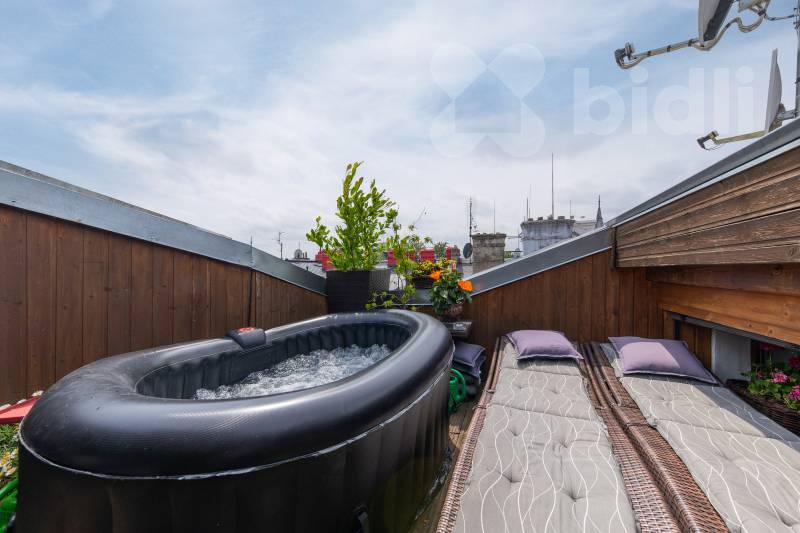 Součástí bytu je také terasa poskytující naprosté soukromí, ideální pro relaxaci či posezení.