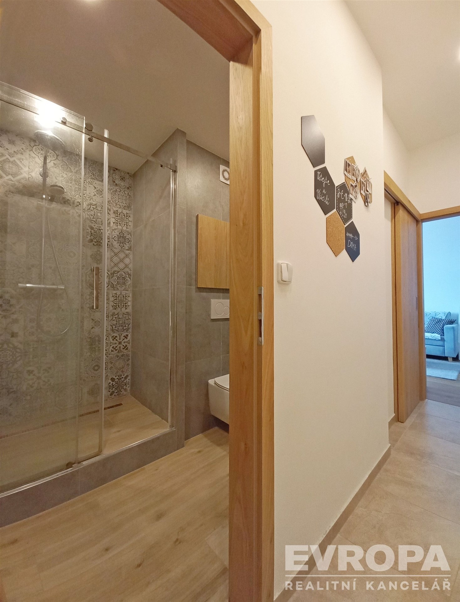 V interiéru byly použity kvalitní materiály – dřevěné podlahy v obytných místnostech a praktická dlažba v chodbě. Velkým benefitem je vestavěný nábytek (skříně i obývací stěna), který zůstává součástí bytu. Dále moderní kuchyňská linka a vlastní plynový kotel pro vytápění i ohřev vody.