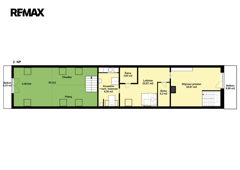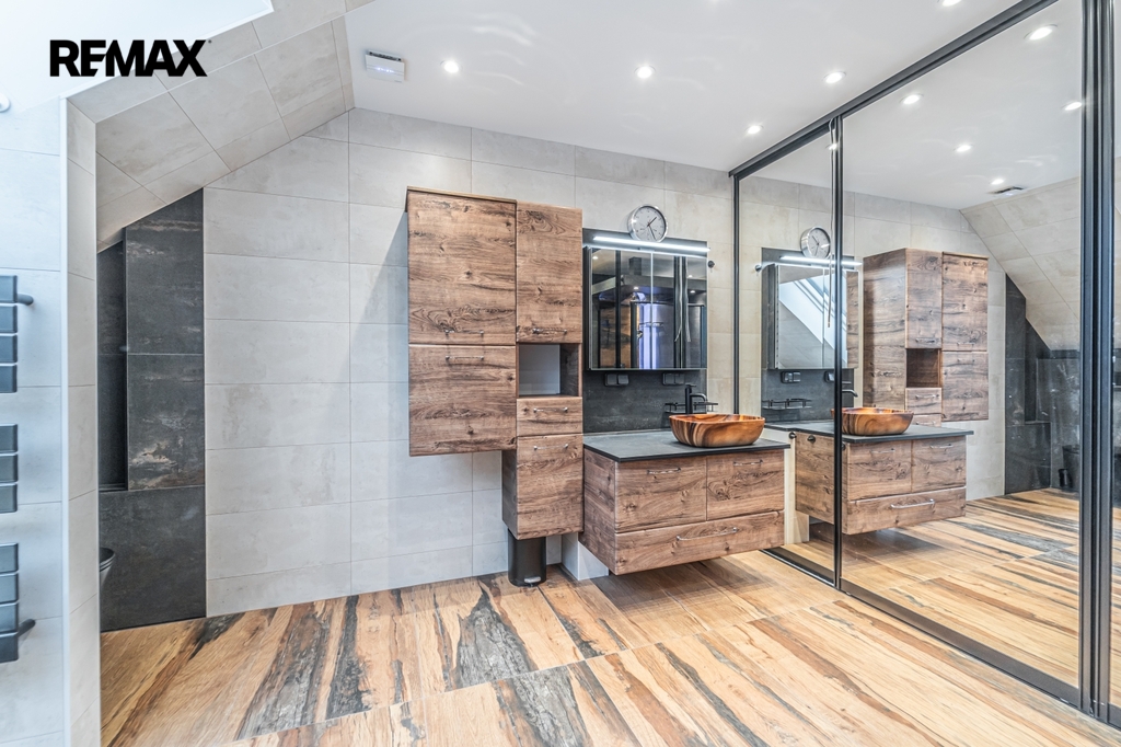 Bytová jednotka č.2 je po kompletní rekonstrukci. Dispozičně se jedná o 4+1 rozdělen do dvou pater se dvěma koupelnami s celkovou plochou cca 180 m². Součástí je i soukromý balkon s výhledem do zahrady. Byl zde promyšlen každý detail. Vytápění a ohřev vody je řešeno tepelnými čerpadly (voda-vzduch a vzduch-vzduch). Dále v rámci vytápění - podlahové teplovodní vytápění, krbová kamna a radiátory. Vstup na zahradu zajištuji velká francouzská okna, kde ve vnitřní části je zabudována el. rohož proti rosení. Další velkou výhodou je systém IGLU (Jde o ideální způsob izolace podlahy proti vlhkosti a odvětrání). Kamna mají saní vzduchu z venkovního prostoru. Komín je troj komorový. Hned u francouzského okna je připraven vývod na mobilní klimatizaci. V suterénu je připraven prostor pro soustavu čističky/filtrace vody. Dále je v suterénu připraven vývod kabelu vč. prostoru pro baterie na solární panely. V celé horní části je vzduchový systém pro chlazení či vytápění, který je napojen na tepelné čerpadlo (vzduch-vzduch)