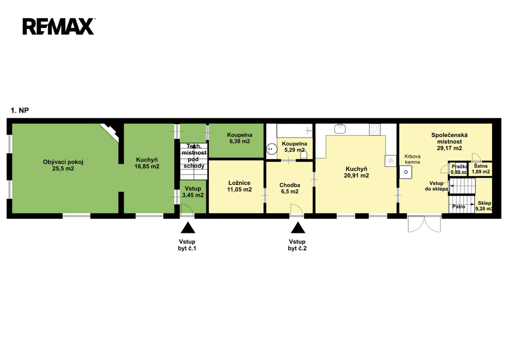 Bytová jednotka č.1 je před finálním doděláním. Dispozičně se jedná o 3+1 rozdělena do dvou pater s celkovou plochou cca 100 m².