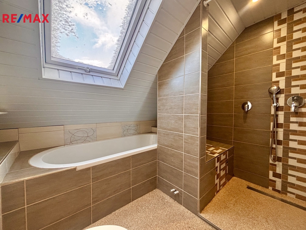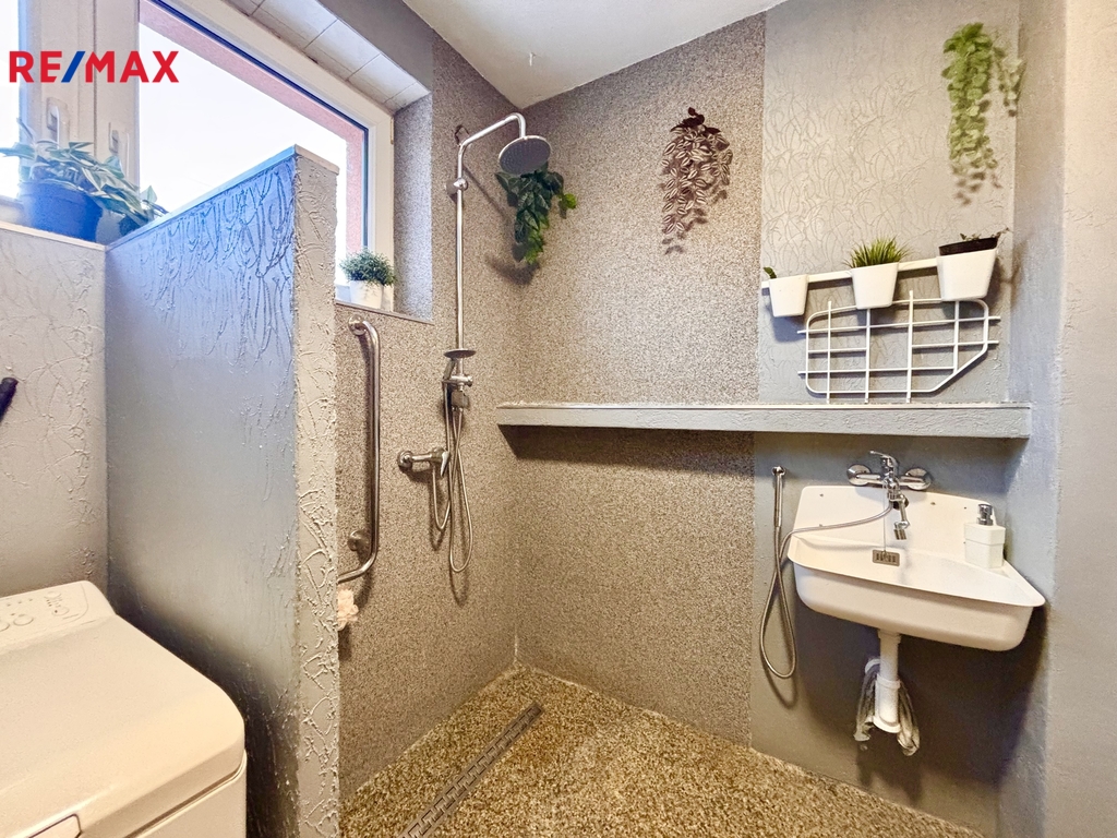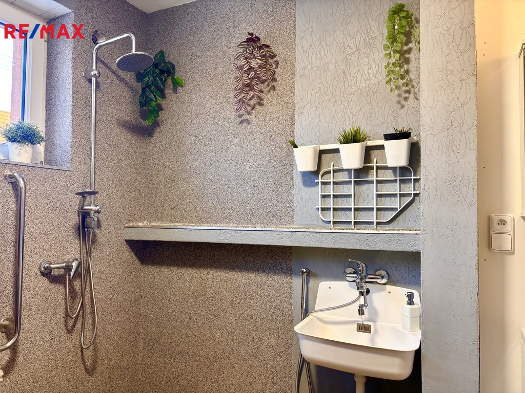 Suterén: Dům je celoplošně podsklepen, s přístupem z domu i ze dvora a nabízí velké množství úložného prostoru, komory, prádelnu, kotelnu s plynovým kotlem i kotlem na tuhá paliva, bojlerem. Celková plocha suterénu je 68,01 m2.