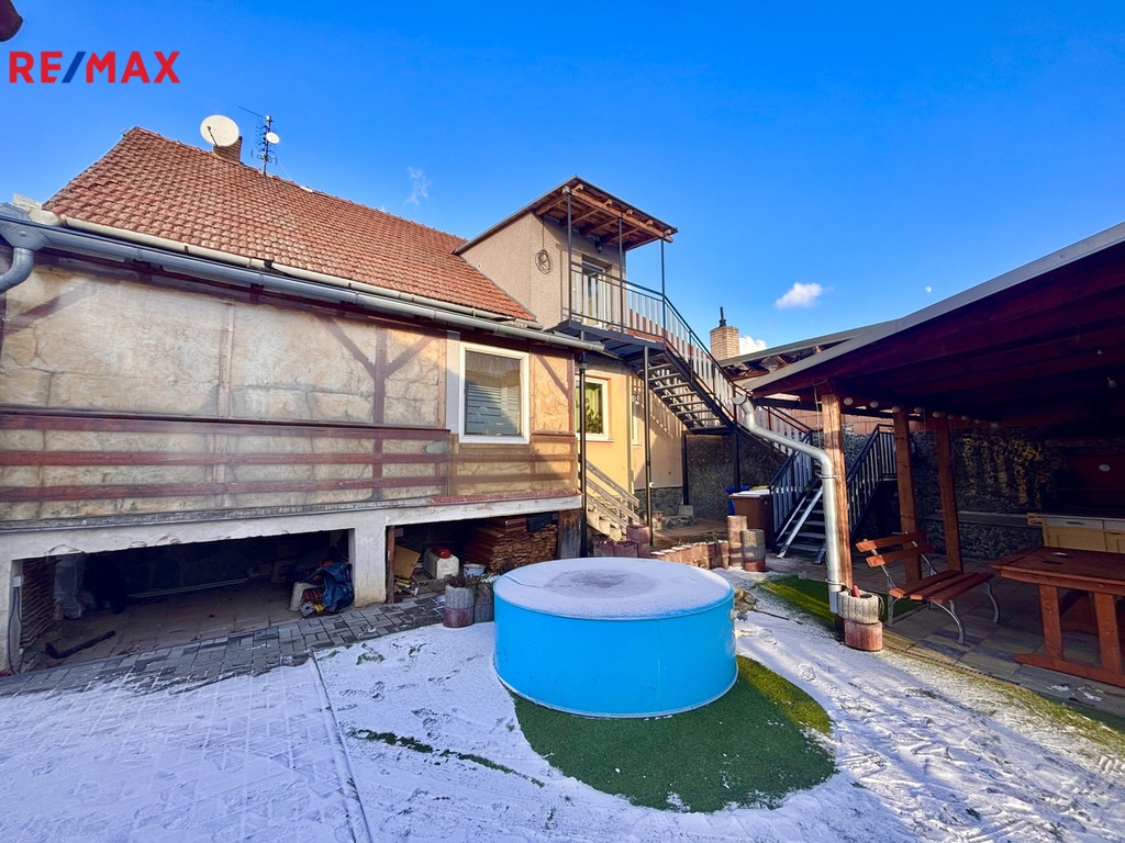 Čas s rodinou si užijete pod zastřešenou pergolou u hospodářské budovy, kde můžete lenošit, či grilovat a také menší zahrádka s ovocnými stromy poskytuje prostor k zahradničení a aktivní odpočinek.