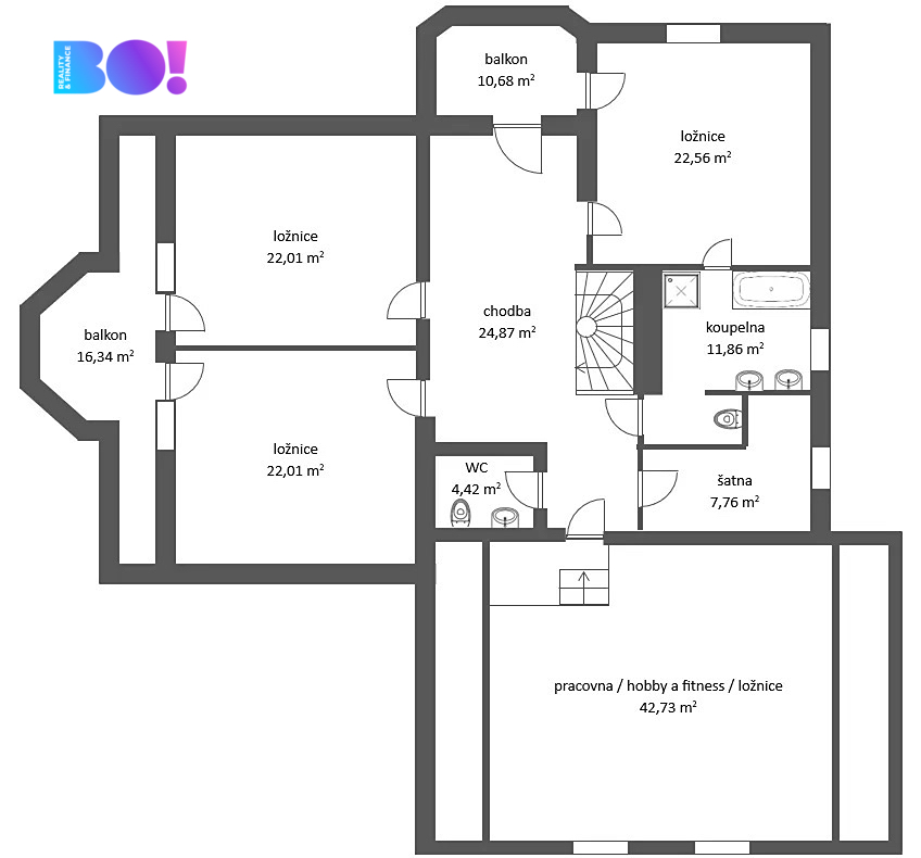- Užitná plocha: 322 m²