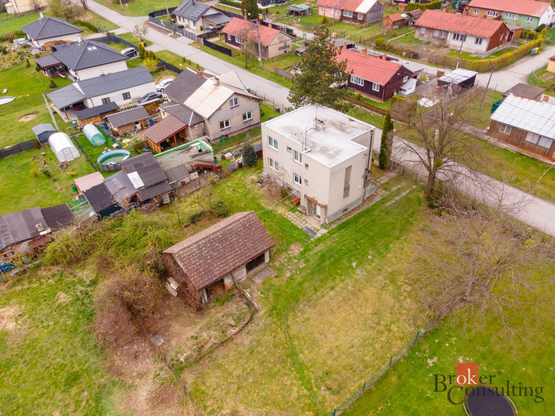 Dům stoji na pozemku s dostatkem prostoru pro zahradu či relaxační zónu. součástí pozemku je také zděná kůlna , kterou lze po úpravách přestavět na dvojí garáž či dílnu a garáž.