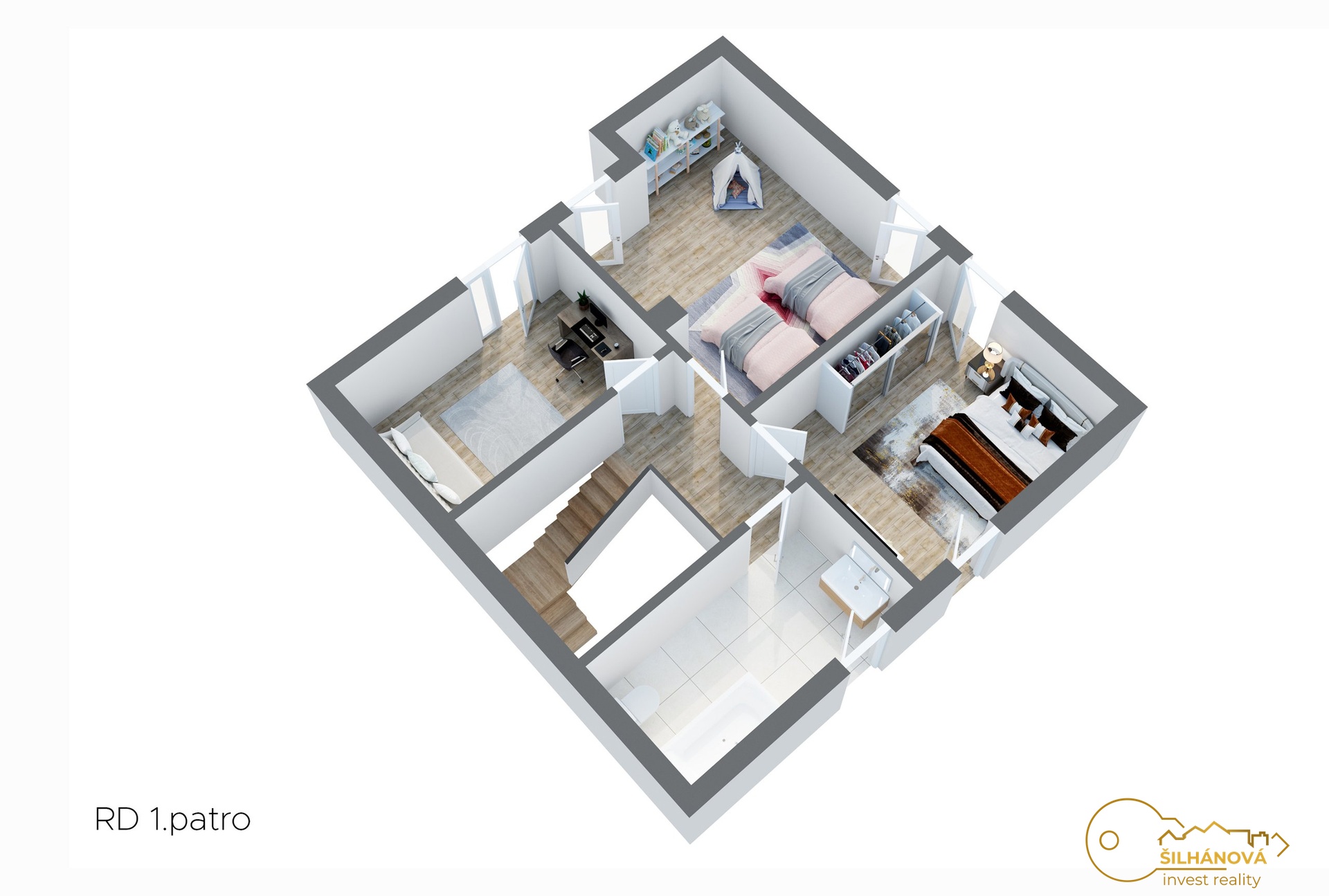 Dispozice domu je 4+1, kde najdete dále dvě koupelny, technickou místnost a půdu, která může do budoucna sloužit pro rozšíření dispozice.