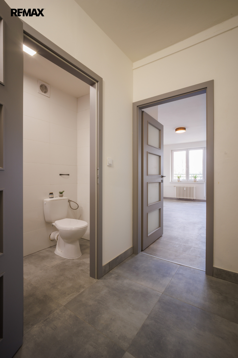 Kompaktní a úsporný byt, jaký se v nabídce objeví málokdy! Tento je navíc po kompletní rekonstrukci, vše nové, připraveno k nastěhování. Organizace bytu je klasická, předsíň se vstupem do koupelny se sprchovým koutem, umyvadlem a toaletou. Poté vstup do pokoje, ve kterém je kuchyňská linka umístěna velmi rozumně za zděnou zástěnou a neruší prostor. Kompletní půdorys najdete ve fotogalerii. V bytě je nové v podstatě vše, rozvody el. i vody, podlahy, dveře i zárubně, sanita, svítidla atd. A když garsonku, tak jedině s balkonem - a zde je, přes celou šířku pokoje. Byt příjemný, útulný viz foto, na podlahách dlažba a vinyl, ve sprchovém koutu polička (jasně, maličkost, ale hodně praktická), pěkný design zařízení. K bytu samozřejmě náleží také sklep.