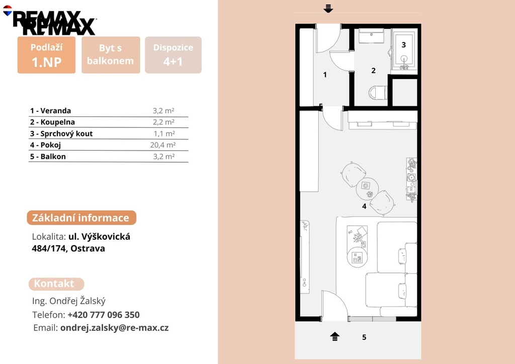 | Dispozice/podlahová plocha: | 1+kk/32 m² |