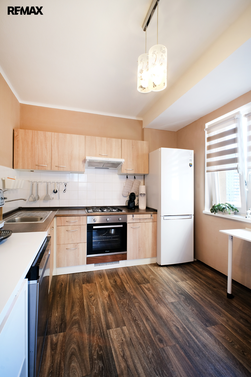 To nejdůležitější je hotové: Byt má zděné jádro. V kuchyni je položena nová laminátová podlaha a především je zde nová elektroinstalace v mědi pro spotřebiče.