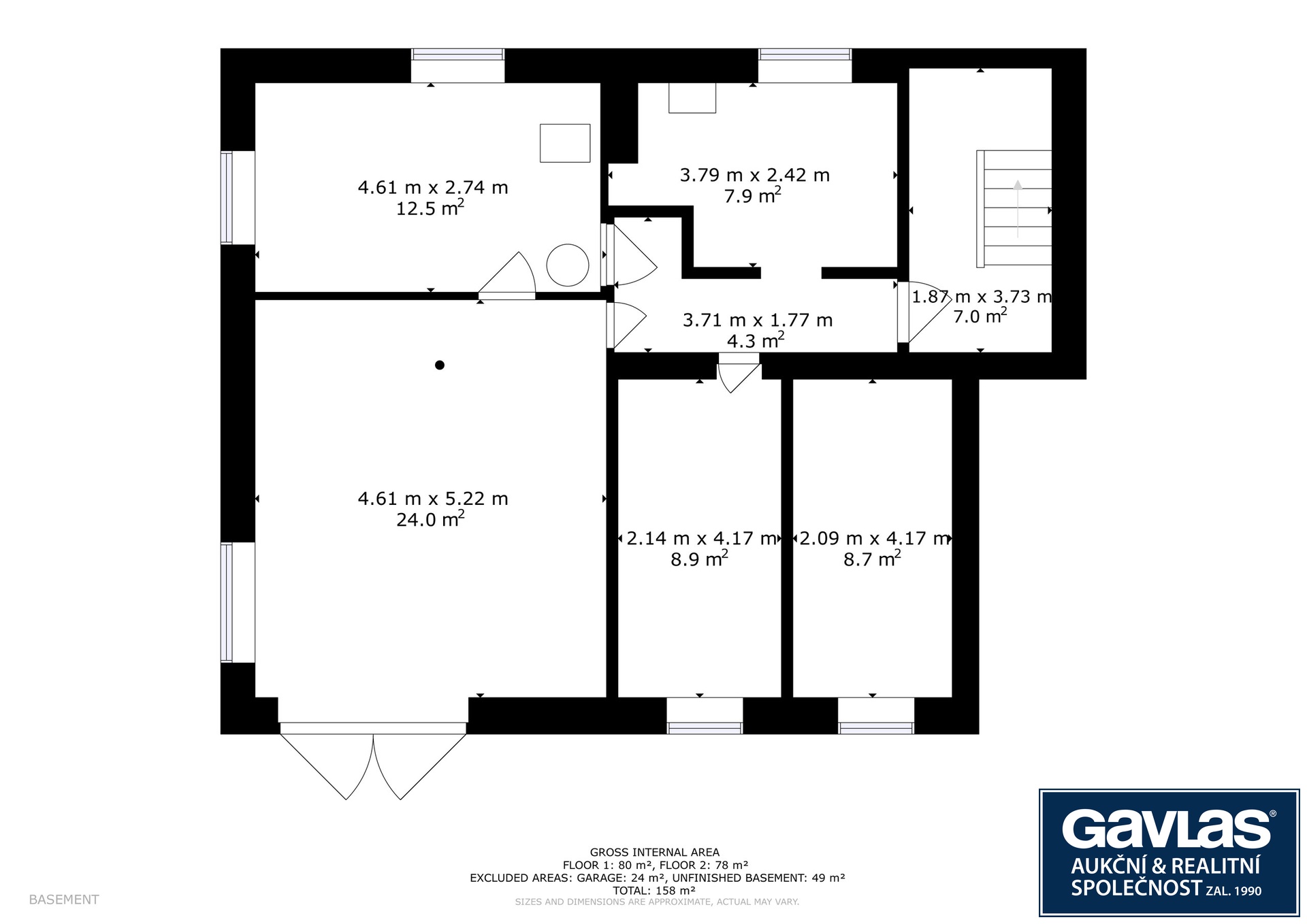 • v suterénu se nachází garáž pro jedno auto, prostorné sklepy, kotelna s plynovým kotlem DAKON Unical a další skladové prostory