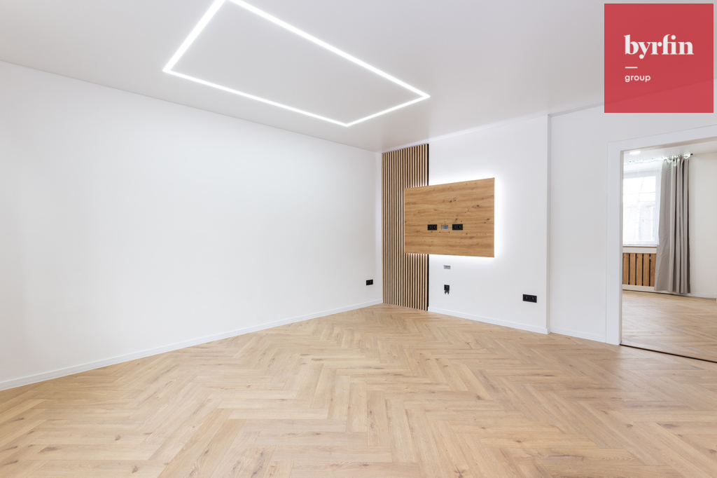 Bytová jednotka prošla zdařilou a citlivě řešenou kompletní rekonstrukcí, při které byl kladen důraz detail a nadčasový vzhled. Celková podlahová plocha činí 72,16 m², užitná plocha bytu je 66 m². K bytu náleží také prostorný zděný sklep o výměře cca 4 m².