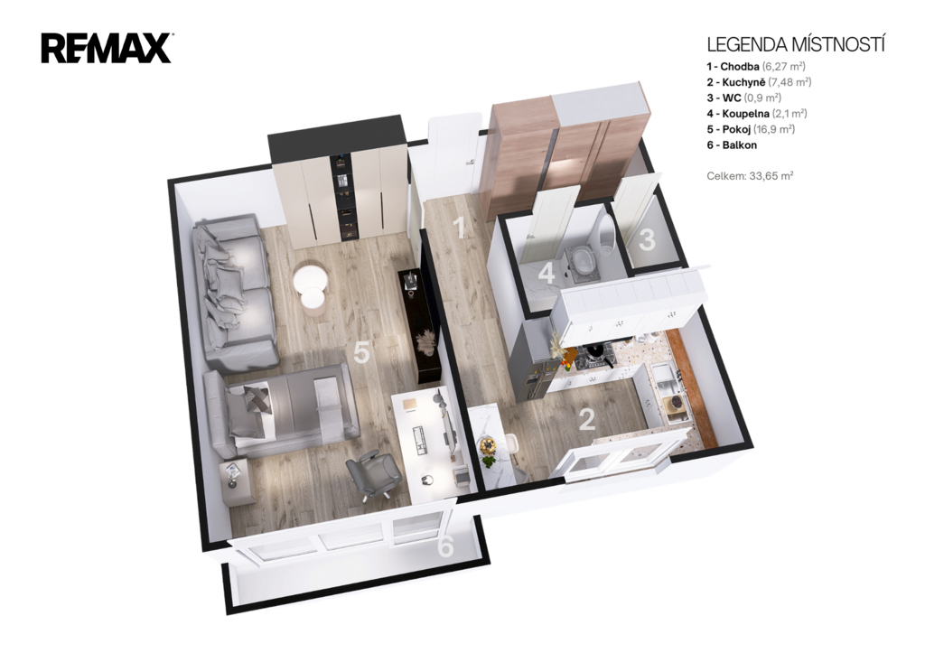 | Dispozice/podlahová plocha: | 1+1/36 m² |