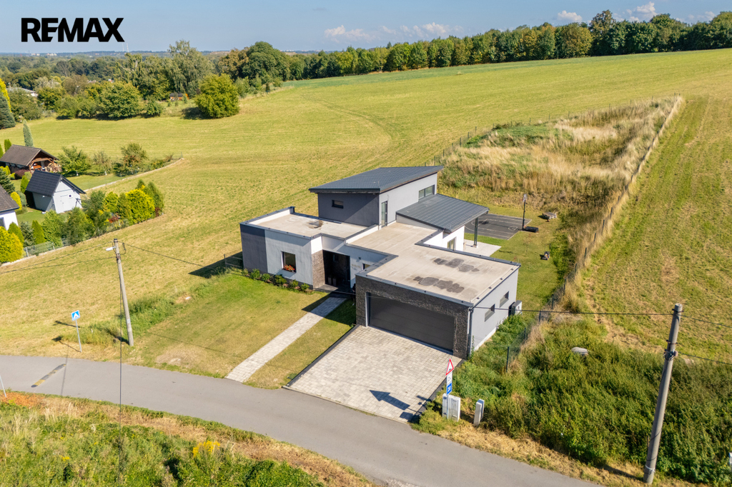 Dům se nachází v tiché a příjemné části obce, která zároveň zajišťuje dobrou dostupnost do centra Ostravy i na hlavní dopravní tahy. Jedná se o ideální volbu pro rodinu, která hledá moderní, prostorné a originální bydlení s možností aktivního trávení volného času na vlastním pozemku.