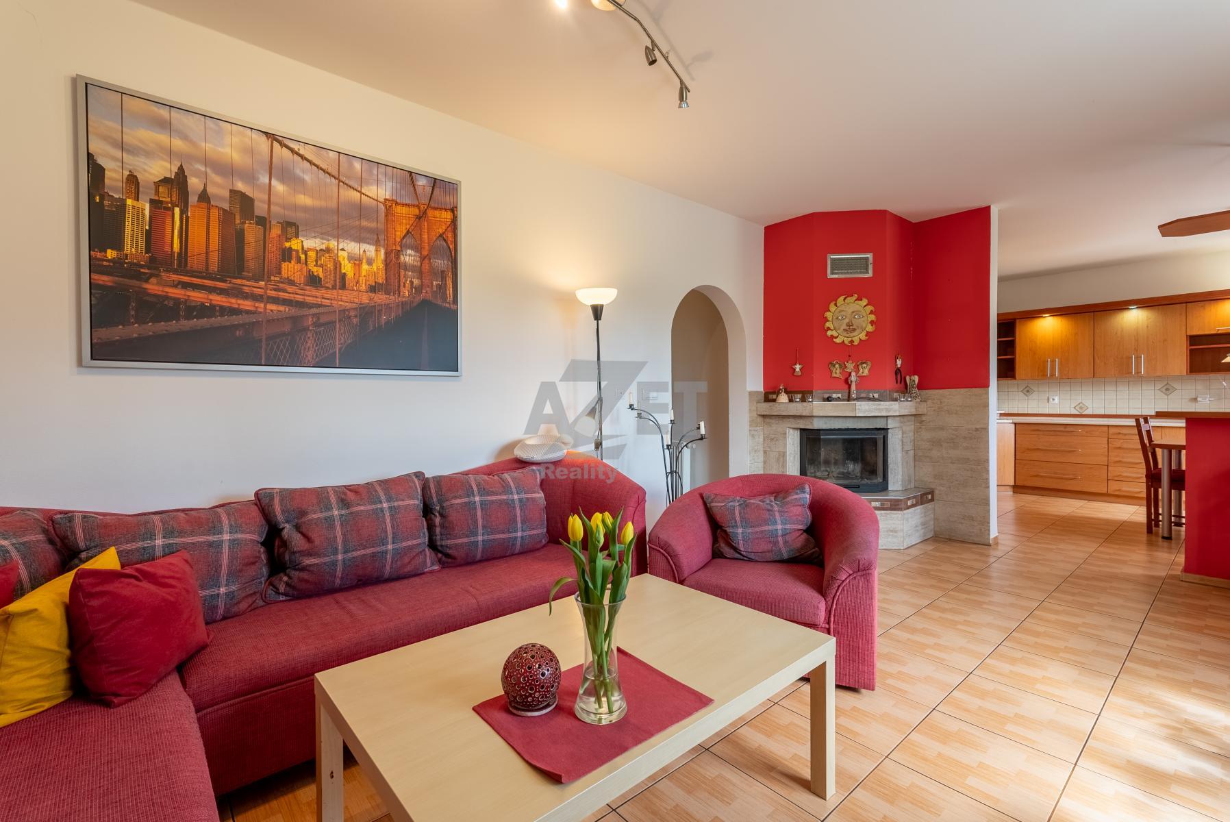 Dominantou domu je obývací pokoj s kuchyňským koutem, který tvoří přirozené centrum rodinného života.