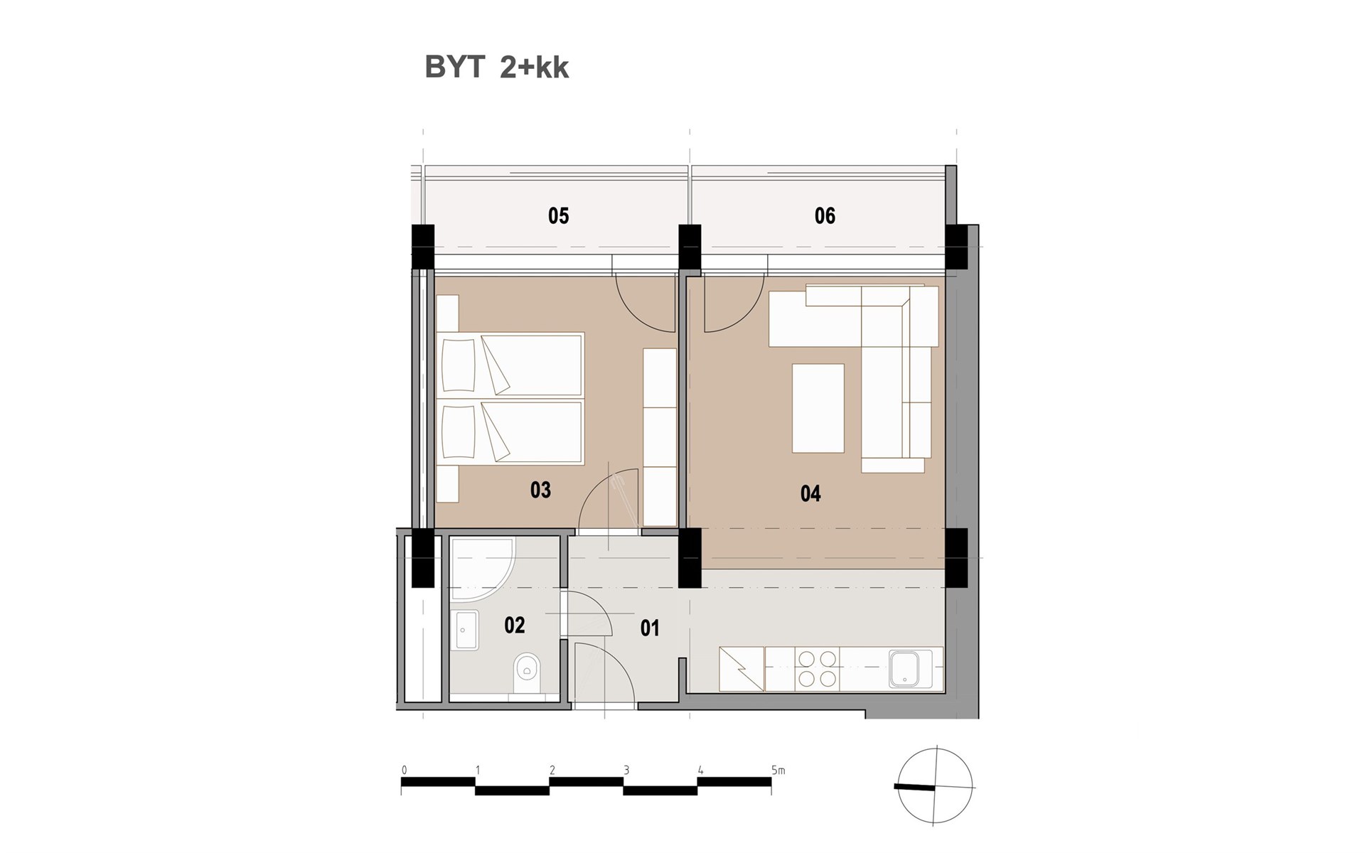 - Dispozice bytu: 2+kk