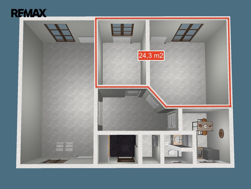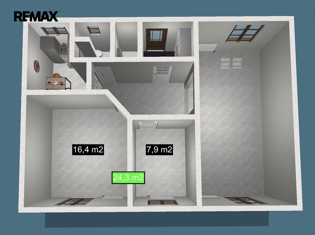 Objekt je nabízen bez zařízení a v současné době prochází rekonstrukcí spojenou se změnou dispozic (dle půdorysu).