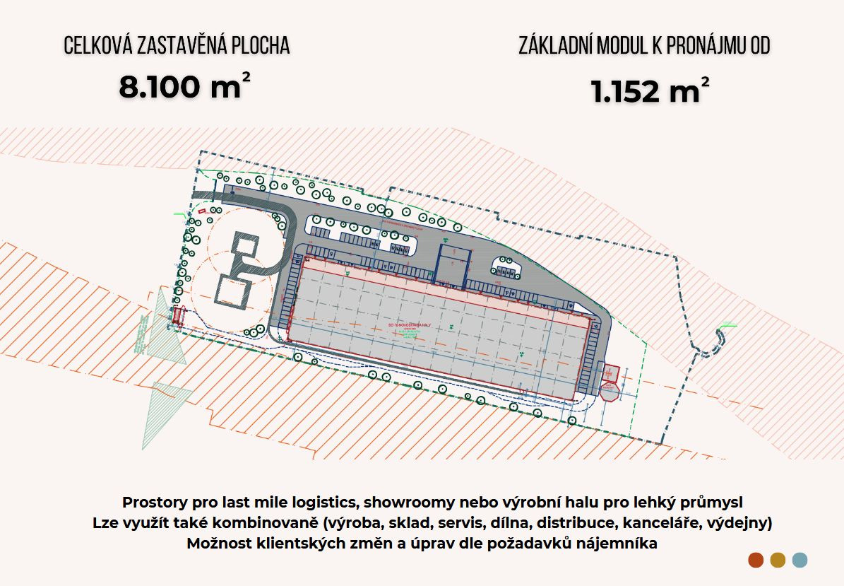 - k dispozici samostatné jednotky od 594 m² - 4608 m² v rámci jedné budovy