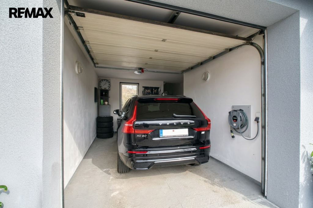 Součástí domu je garáž pro jeden automobil, další parkování je možné přímo na pozemku.