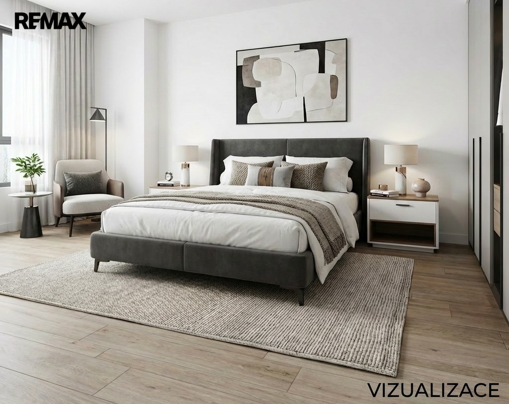 Výhodou bytu jsou neprůchozí obytné místnosti. Dispozice bytu a velikosti jednotlivých místností jsou patrné z půdorysů, které naleznete mezi fotkami inzerátu. Mezi fotkami jsou rovněž vizualizace některých místností.