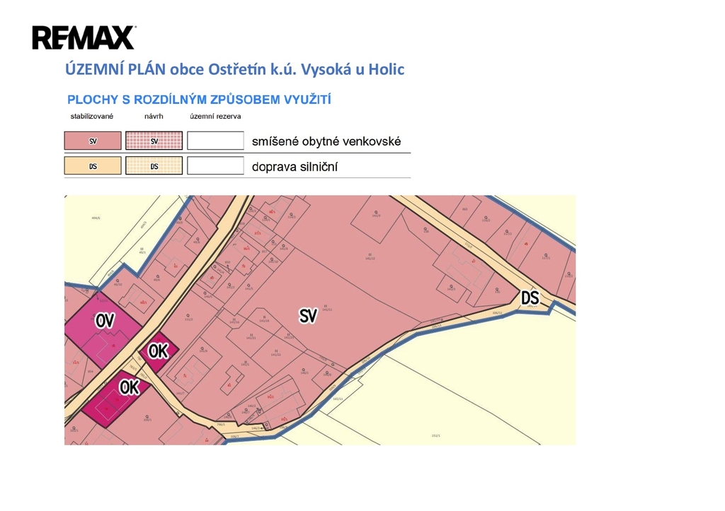 ✅ V územním plánu jde o plochy smíšené obytné – venkovské (SV). Plocha je určena zejména pro plochy smíšeného využití ve venkovských sídlech využívané zejména pro bydlení v rodinných domech