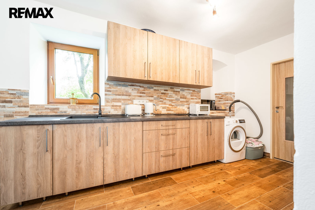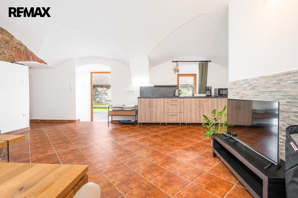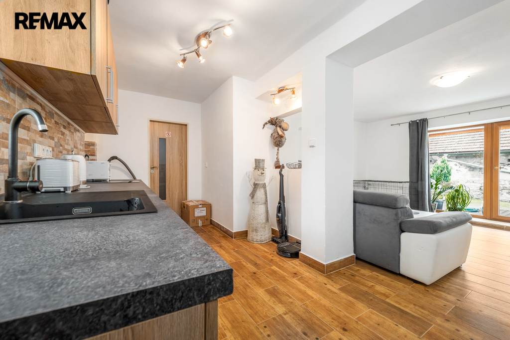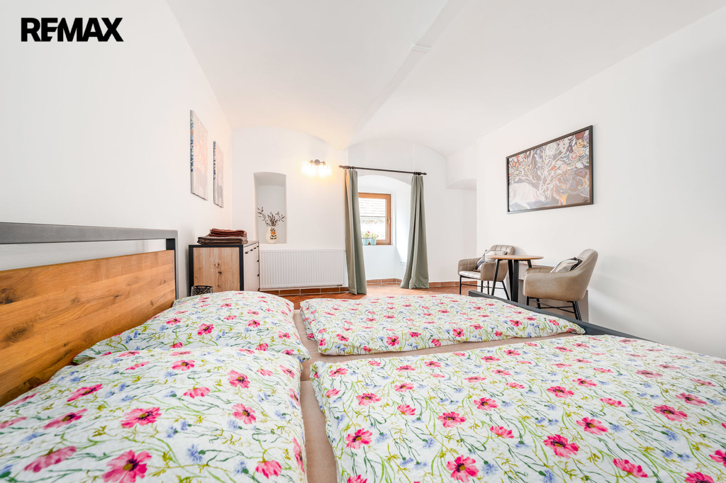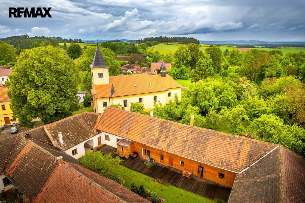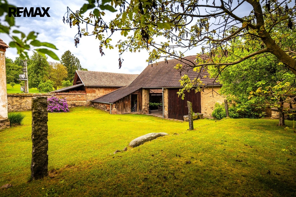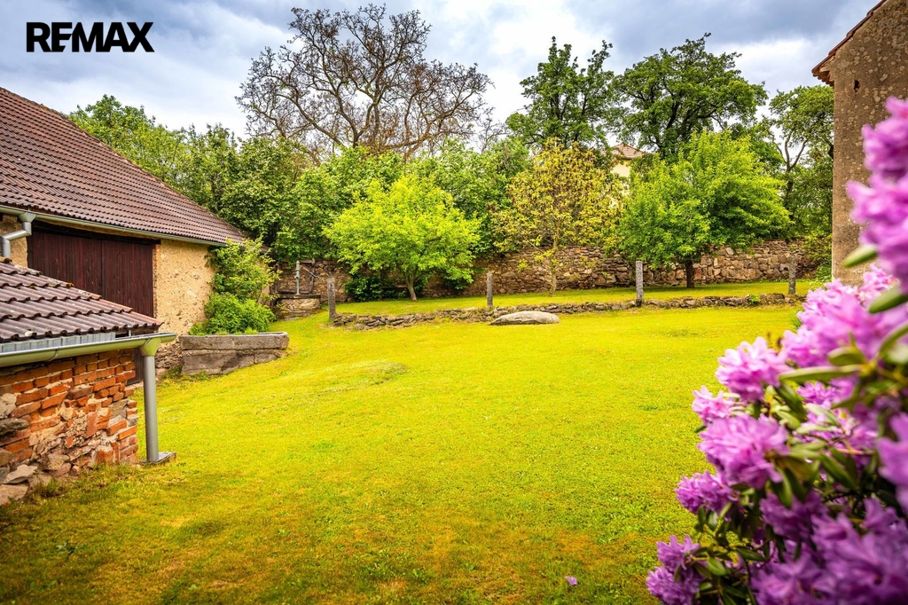 Dům s uzavřeným dvorem z přední i zadní části nabízí maximální soukromí. Dřevěná terasa podél vnitřního dvora k využití a umístění odpočinkové části, grilovací kout s ohništěm, relaxační zóna a skalky. Průjezdnou stodolou se dostanete na zahradu, na kterou je možný druhý vjezd i z hlavní komunikace. Samostatná stodola o výměře 200m2 je evidována jako stavební pozemek, možnost rekonstrukce a oddělení. V případě zájmu možnost prodeje pouze stodoly se zahradou, která je přístupná z obecní komunikace. Odděleno by bylo geometrickým plánem. Dům je možný použít pro účely rodinného bydlení či vícegeneračního bydlení, ale také komerční. Celková výměra pozemku je 1624m2, obytná plocha má výměru 363m2, plocha stodol a technických místností je 408m2.