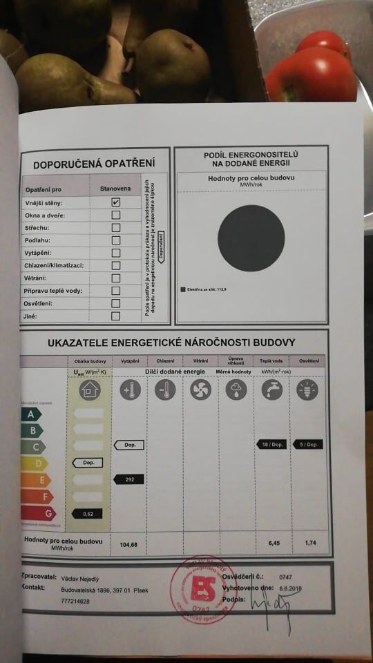 - Energetická náročnost budovy: G - Mimořádně nehospodárná