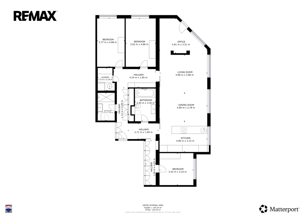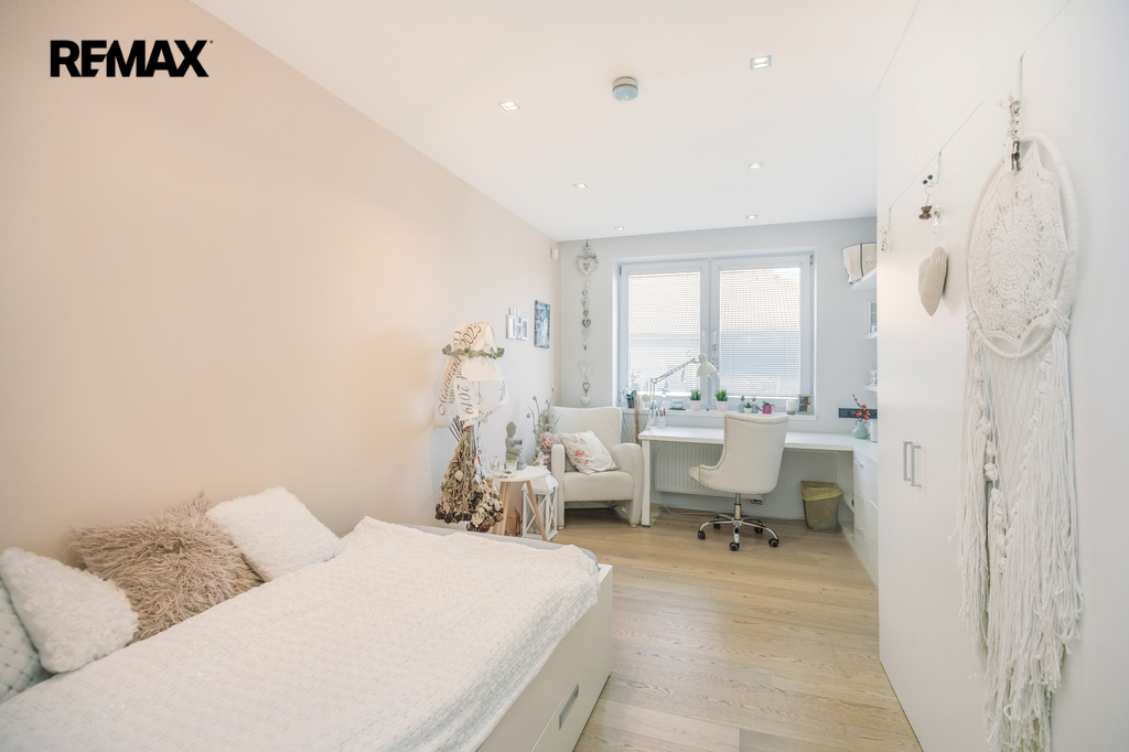 Byt dále nabízí tři samostatné neprůchozí pokoje, sloužící jako ložnice a dětské pokoje, dvě koupelny s toaletou, prádelnu a technickou místnost. Součástí bytu balkon a terasa.