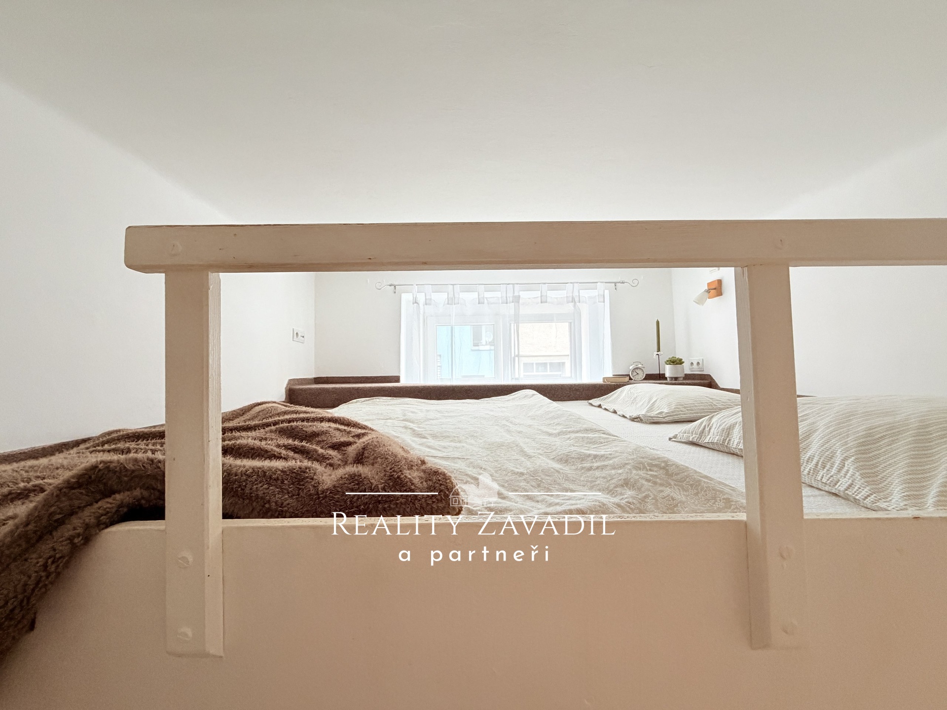 Díky vysokému stropu jsou v obývacím a dětském pokoji vyvýšené, dřevěné podesty na spaní ve velikosti dvojlůžka, což značně zvětšuje obytný prostor.