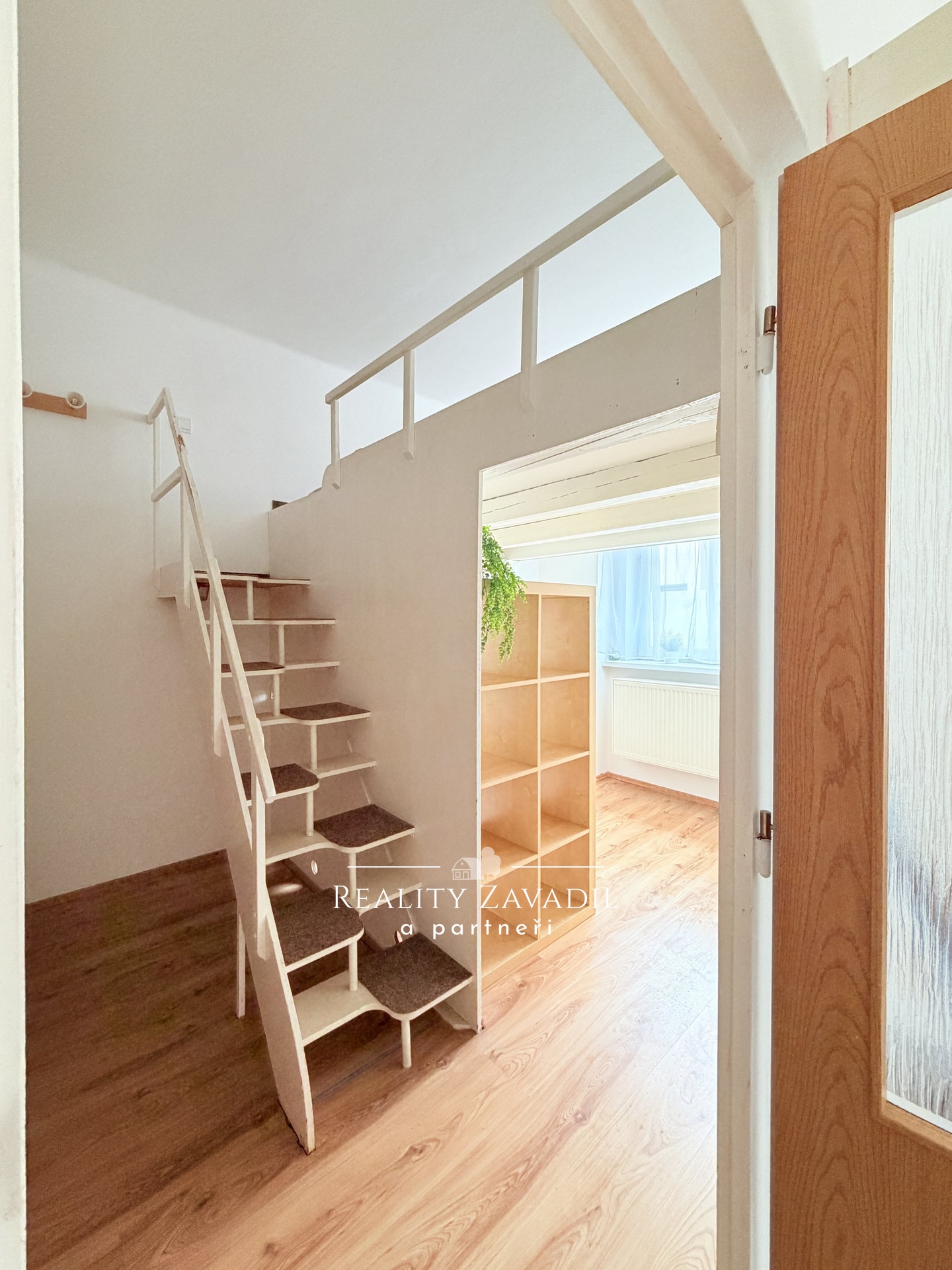 Byt nabízí netradiční, ale velmi funkční uspořádání, ideální například pro mladý pár, rodinu nebo jako investiční příležitost k pronájmu.