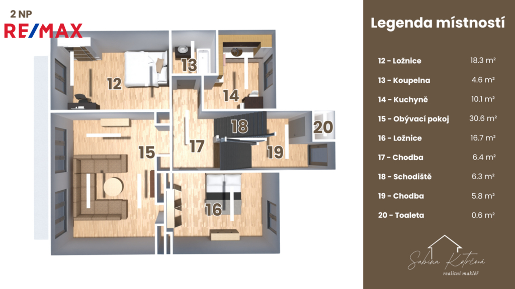 Okolí tvoří kultivovaná rezidenční čtvrť s výbornými sousedskými vztahy. Dům má navíc potenciál pro rozšíření o půdní vestavbu – nabízí se tak možnost vícageneračního bydlení, nebo zajímavá investiční příležitost. Díky své poloze, velikosti a variabilní dispozici je vhodný jak pro rodinné bydlení, tak pro kombinaci s podnikáním či pronájmem.