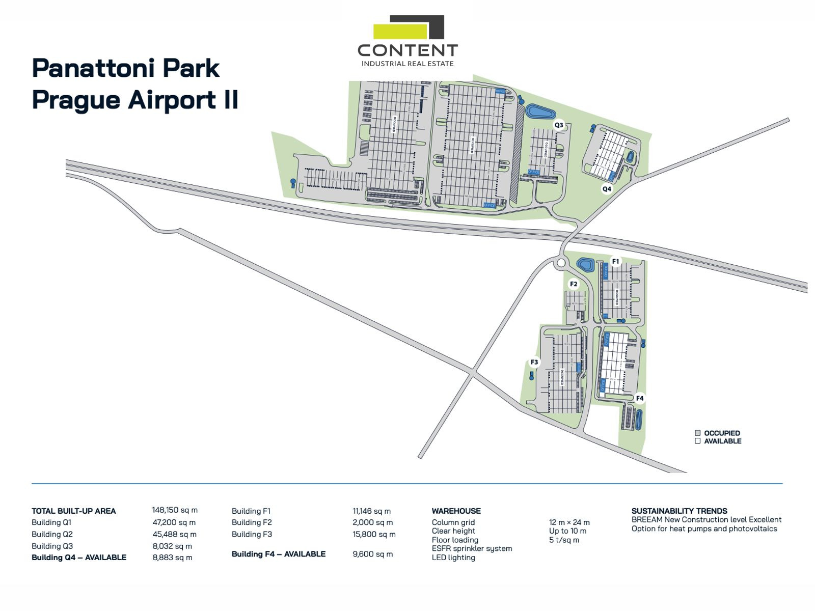 - k dispozici 3000 - 8884 m² (budova Q4), do 10 měsíců,