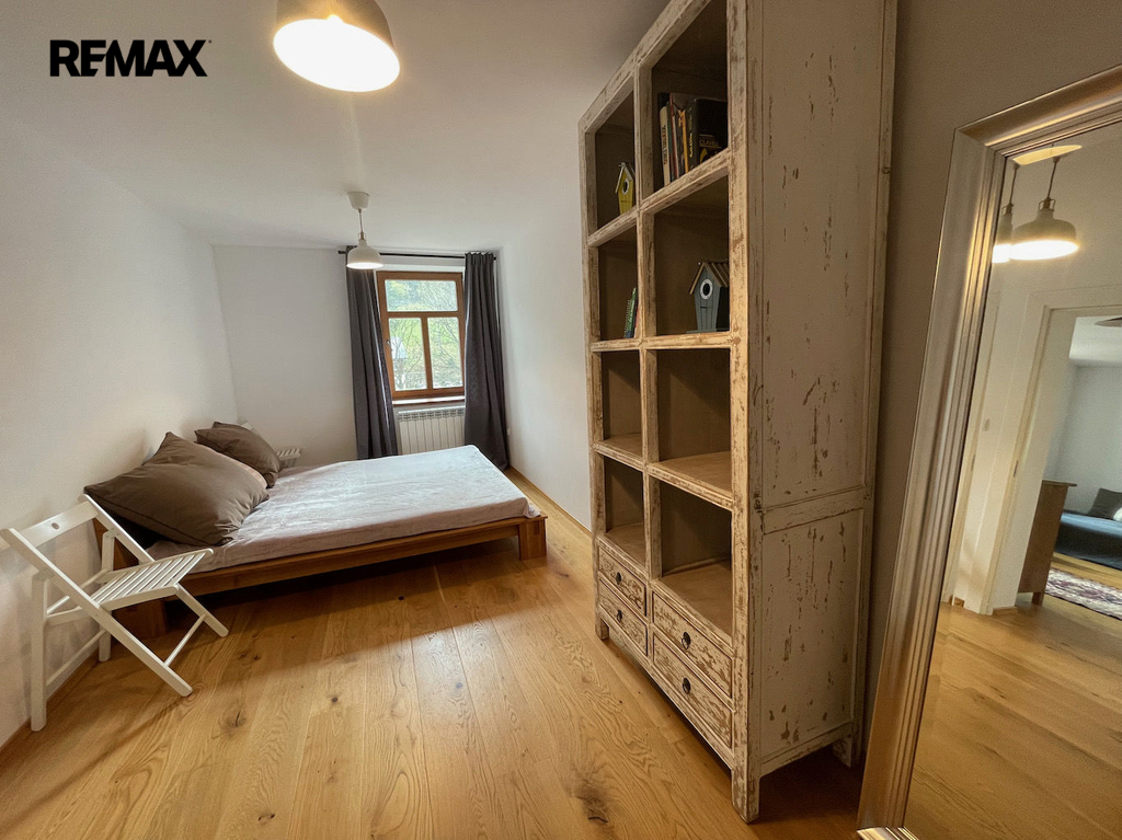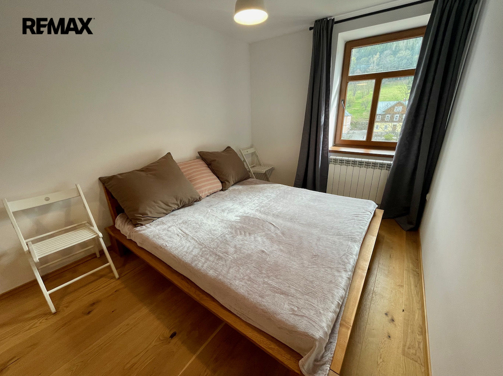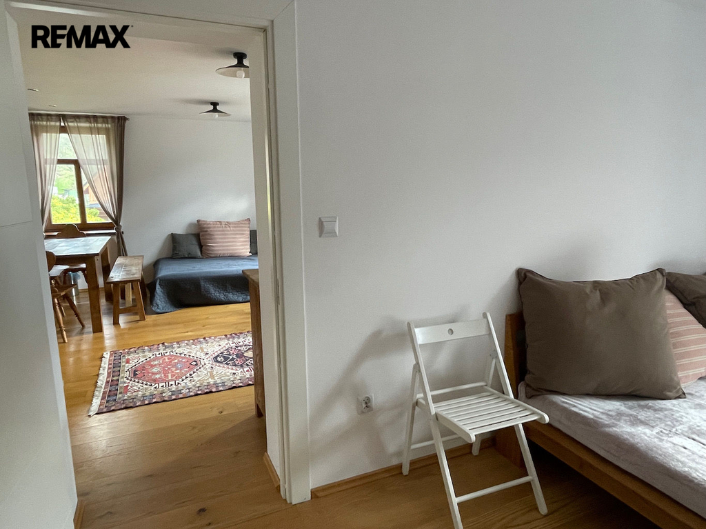 Byt, který se nachází ve 2. nadzemním podlaží rodinného domu, je velmi dobře dispozičně řešen a nabízí jak ubytování pro početnou rodinu, tak i dostatek úložných prostor. Dispozici bytu tvoří předsíň, prostorný obývací pokoj s kuchyní a krbem, dvě ložnice, koupelna s WC, chodba a technická místnost.
