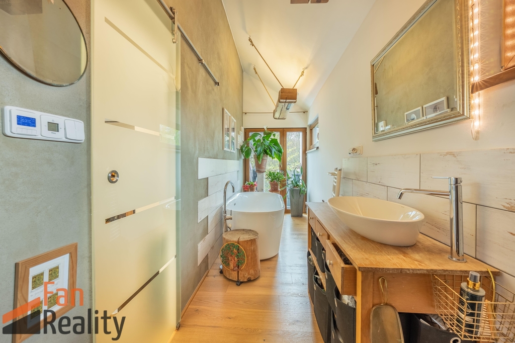 Je tedy ideální volbou pro ty, kteří hledají luxusní a pohodlné bydlení v přírodě, přitom s velmi dobrou dostupností hlavního města. Teplo domova a útulnost, poskytují krbová kamna, s nimiž zimní večery bývají velice příjemné. V období horkých letních dnů je k dispozici klimatizace, která zajistí komfortní prostředí po většinu roku. Možnost přihlášení k trvalému pobytu je potvrzena místním úřadem.
