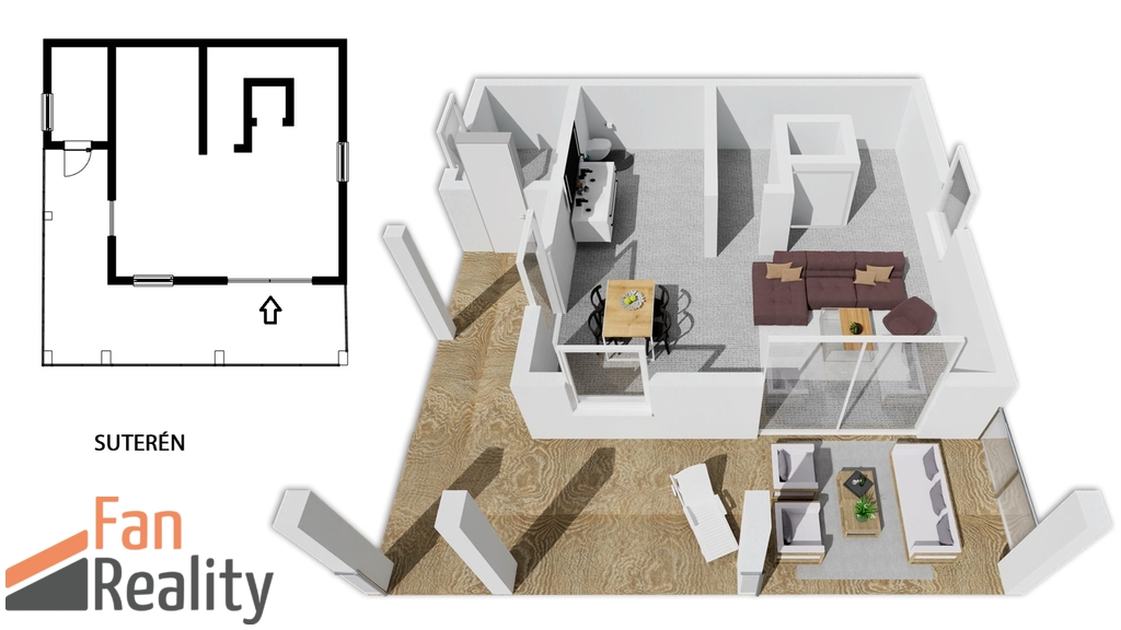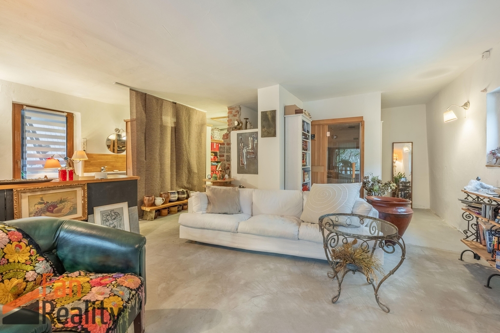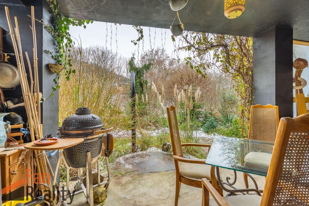 Prostorný ateliér v suterénu je ideálním místem pro kreativní činnosti, nebo práci z domova, na který navazuje venkovní částečně kryté posezení, kde si vychutnáte slunečné dny při pohledu na upravenou zahradu se vzrostlou zelení, ale i výhledy do širšího okolí.