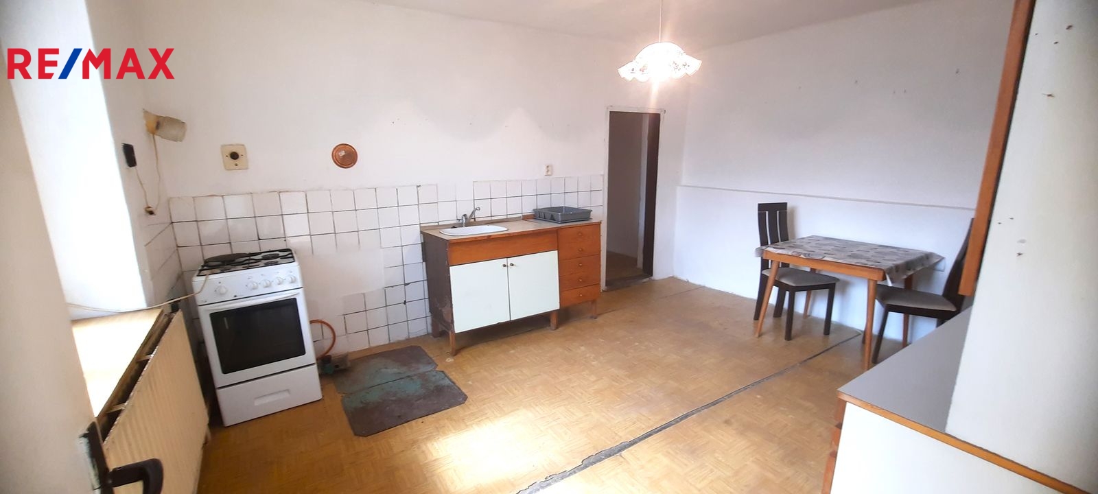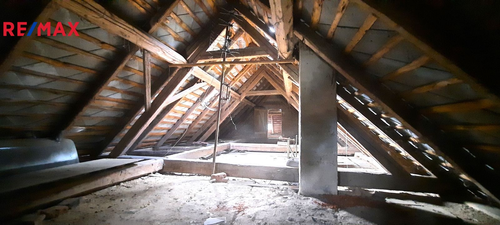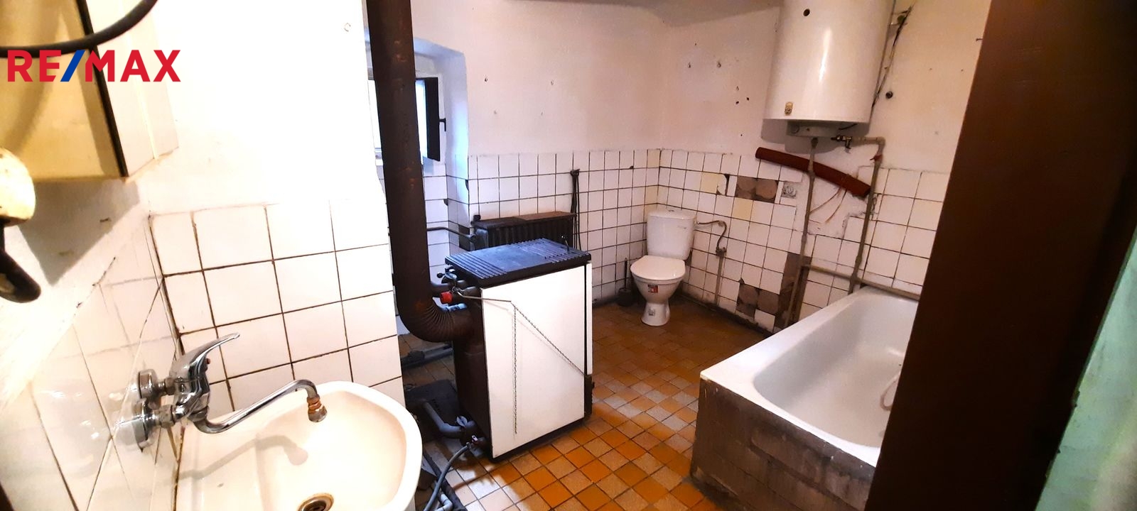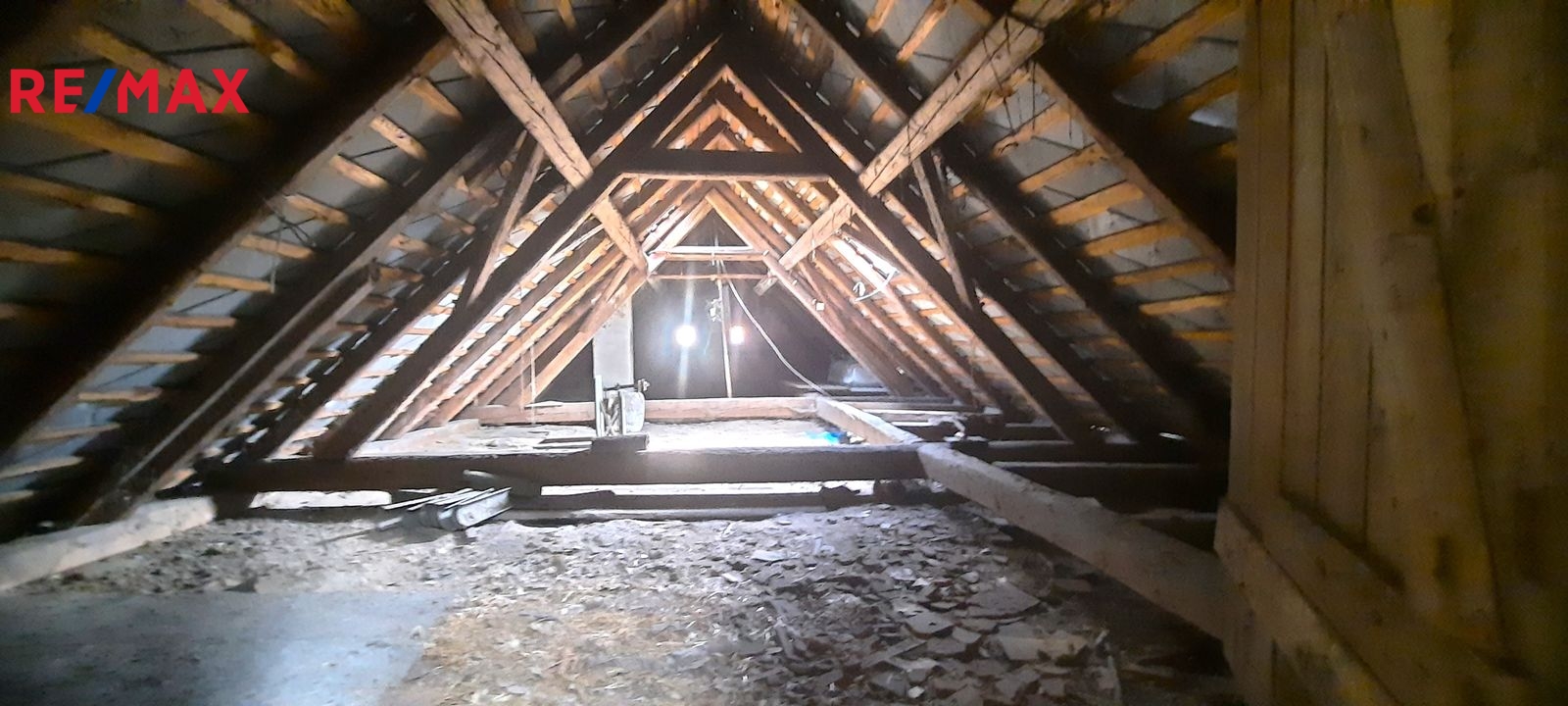 Dispozice: do domu se vchází prosklenou terasou, která vede až ke stodole za domem. Do samotné obytné části domu se z terasy vchází vpravo přes malou chodbičku přímo do kuchyně. Vlevo vedle kuchyně je spíž a dále koupelna s vanou, WC a kotlem na tuhá paliva. Vpravo vedle kuchyně se nachází první místnost, za kterou se směrem do ulice vchází do druhé místnosti. Terasou rovně se dostaneme do stodoly, za kterou se nachází zahrada a vnější menší sklep. Vedle stodoly stojí malá kůlna. Poměrně prostorná půda nabízí možnost půdní vestavby o minimálně dvou pokojích. Nemovitost je ve stavu před kompletní rekonstrukcí.