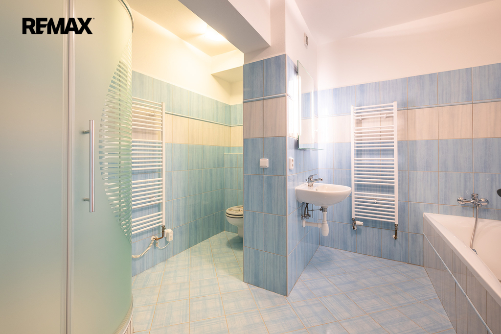 Byt dále nabízí dva samostatné pokoje, které skvěle poslouží jako ložnice, dětský pokoj nebo pracovna. Dispozice je praktická a funkční, bez zbytečných hluchých míst. Koupelna je řešena společně s WC a nabízí jak vanu, tak i sprchový kout, což přináší maximální komfort pro každodenní fungování.