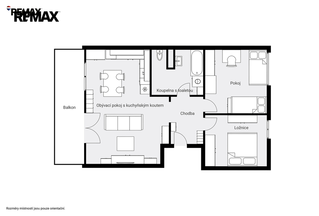 - Dispozice bytu: 3+kk
