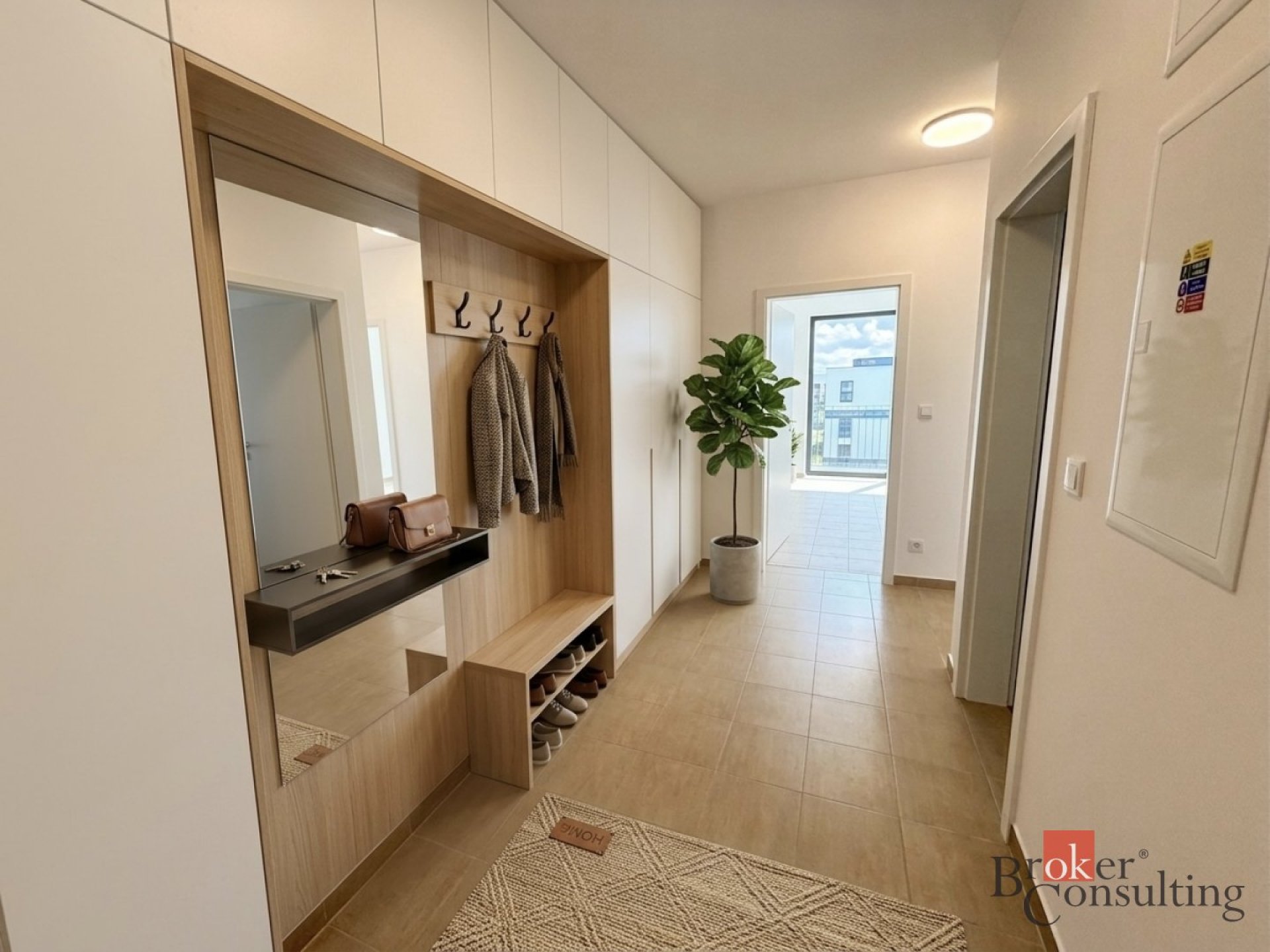 Byt je orientován na jihovýchod, díky čemuž je krásně prosvětlený a zároveň si udržuje příjemnou teplotu po celý rok.