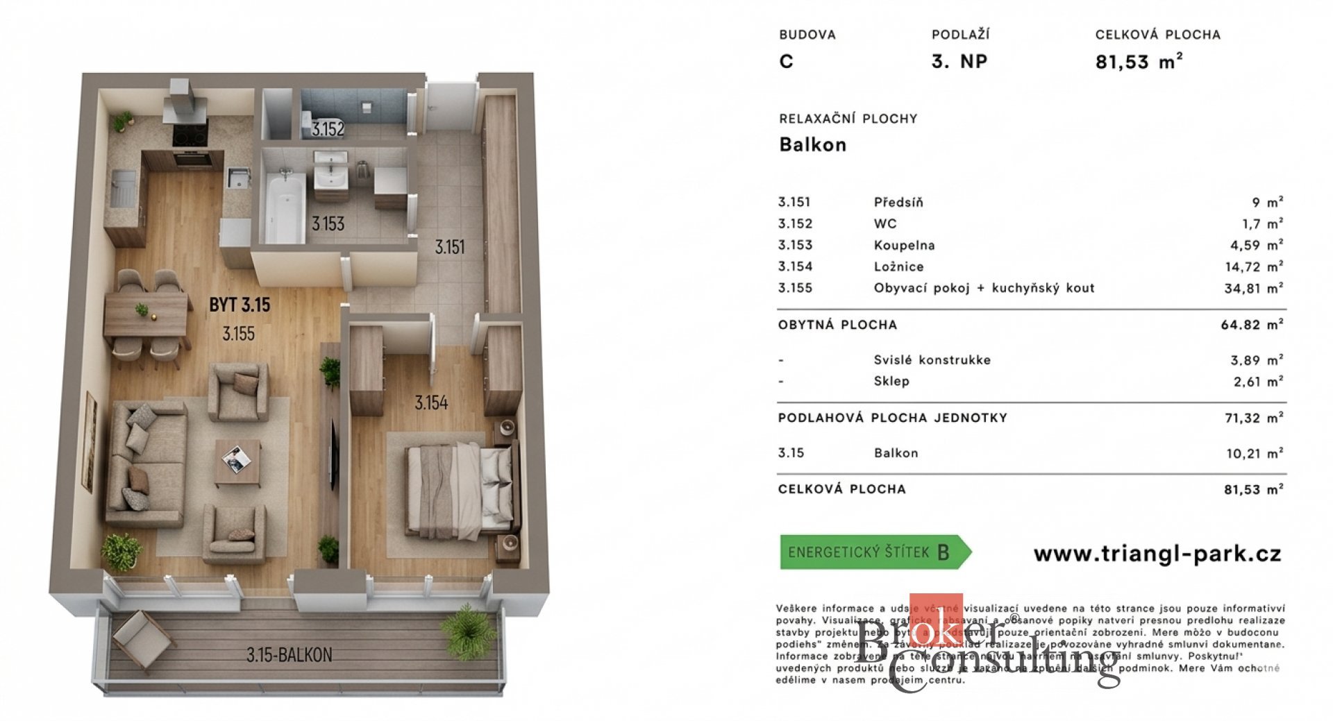 - Energetická náročnost budovy: B - Úsporná