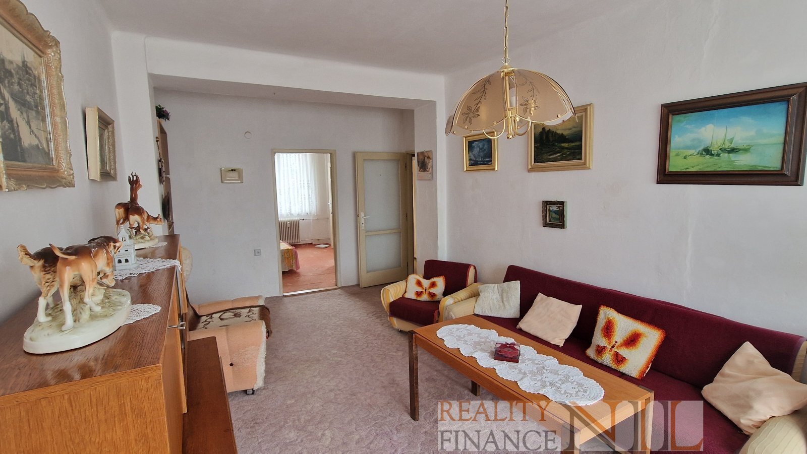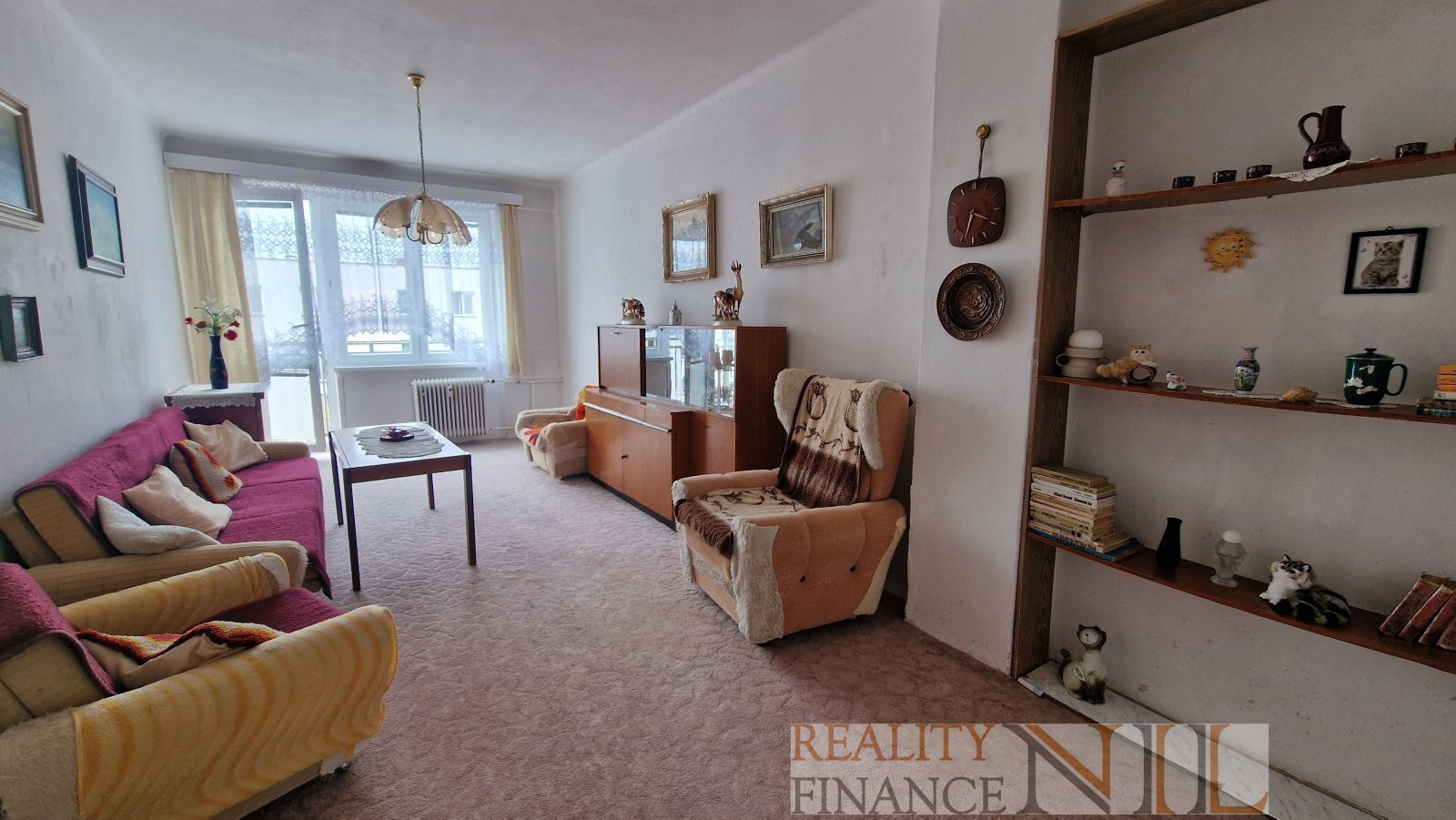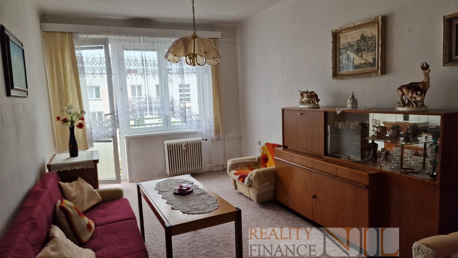 Byt je zařízený kuchyňskou linkou a starším nábytkem, který může zůstat nebo ho majitelé po dohodě vyklidí. Byt je v původním zachovalém stavu, vhodný pro vlastní rekonstrukci.