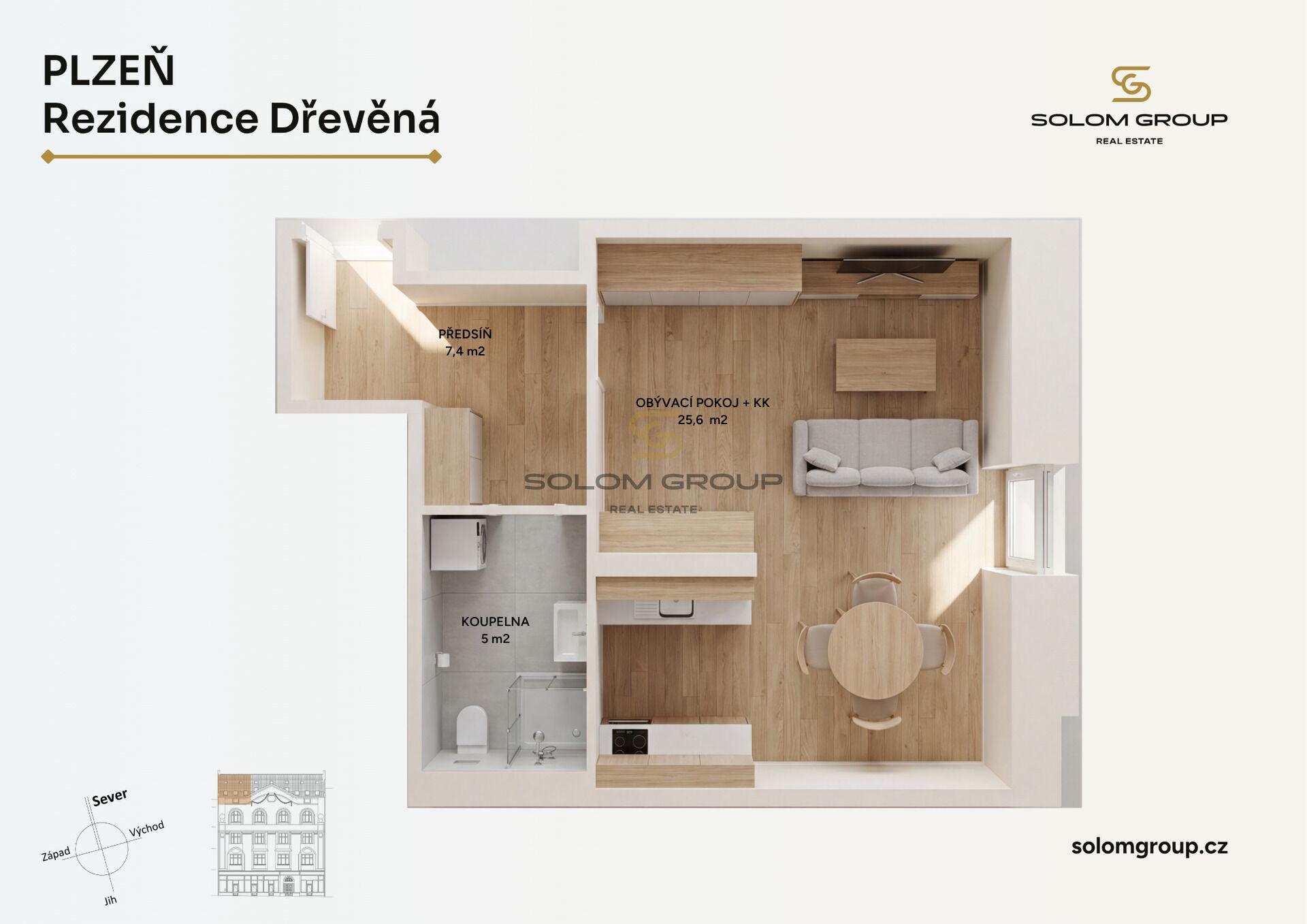 Nabízíme k prodeji kompletně zrekonstruovaný byt 1+kk v 5NP o velikosti 39 m² v družstevním vlastnictví, nacházející se v Plzni, ulice Dřevěná.