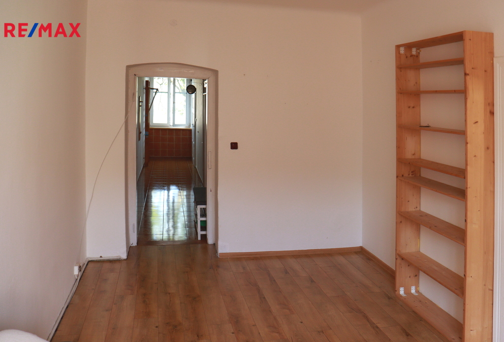 Vysoké stropy a celková velikost bytové jednotky dodávají interiéru vzdušnost a prostornost, jaký v novostavbách jen stěží najdete.