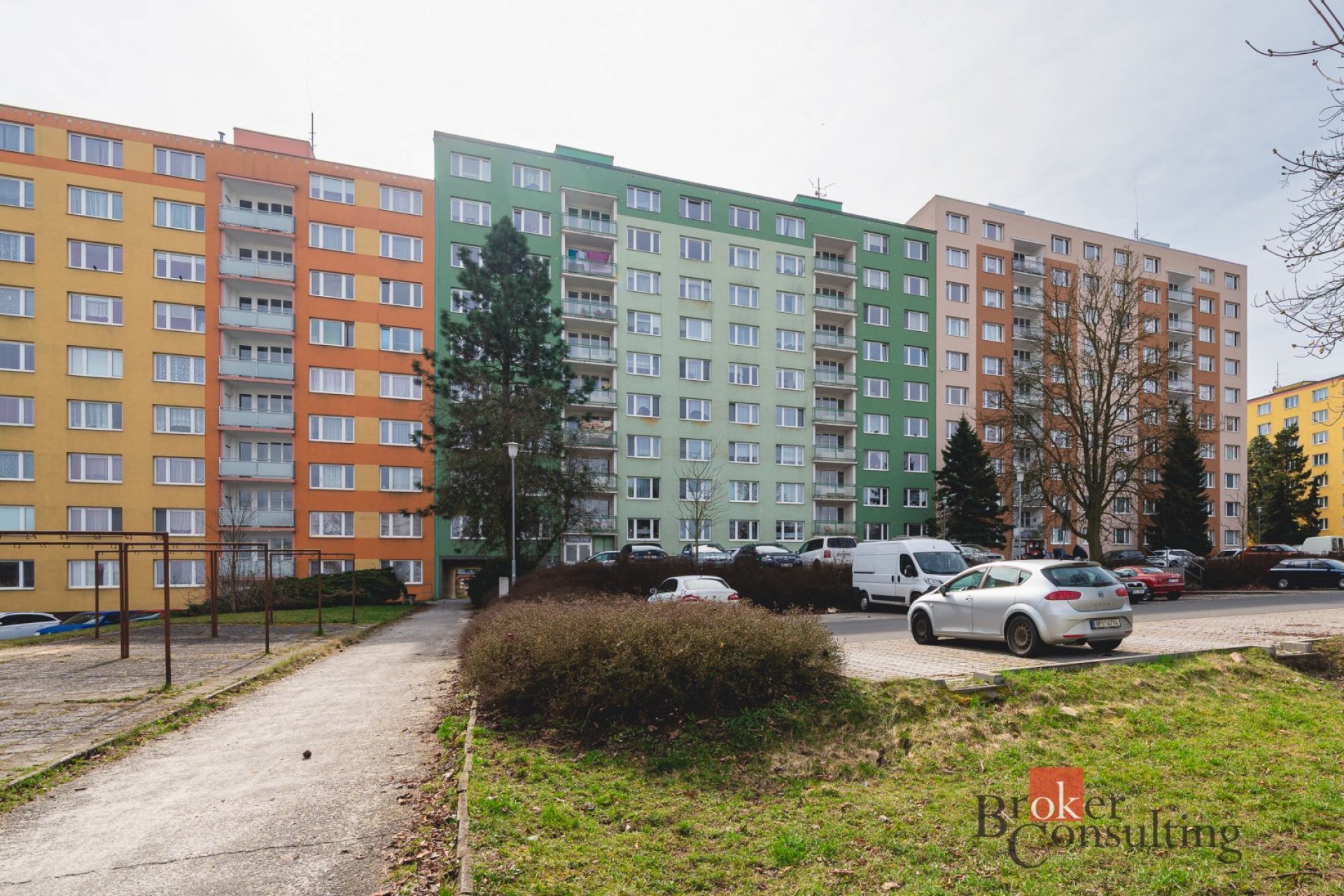 Velkou výhodou je nové, velké parkoviště přímo před domem, které zajišťuje dostatek parkovacích míst.