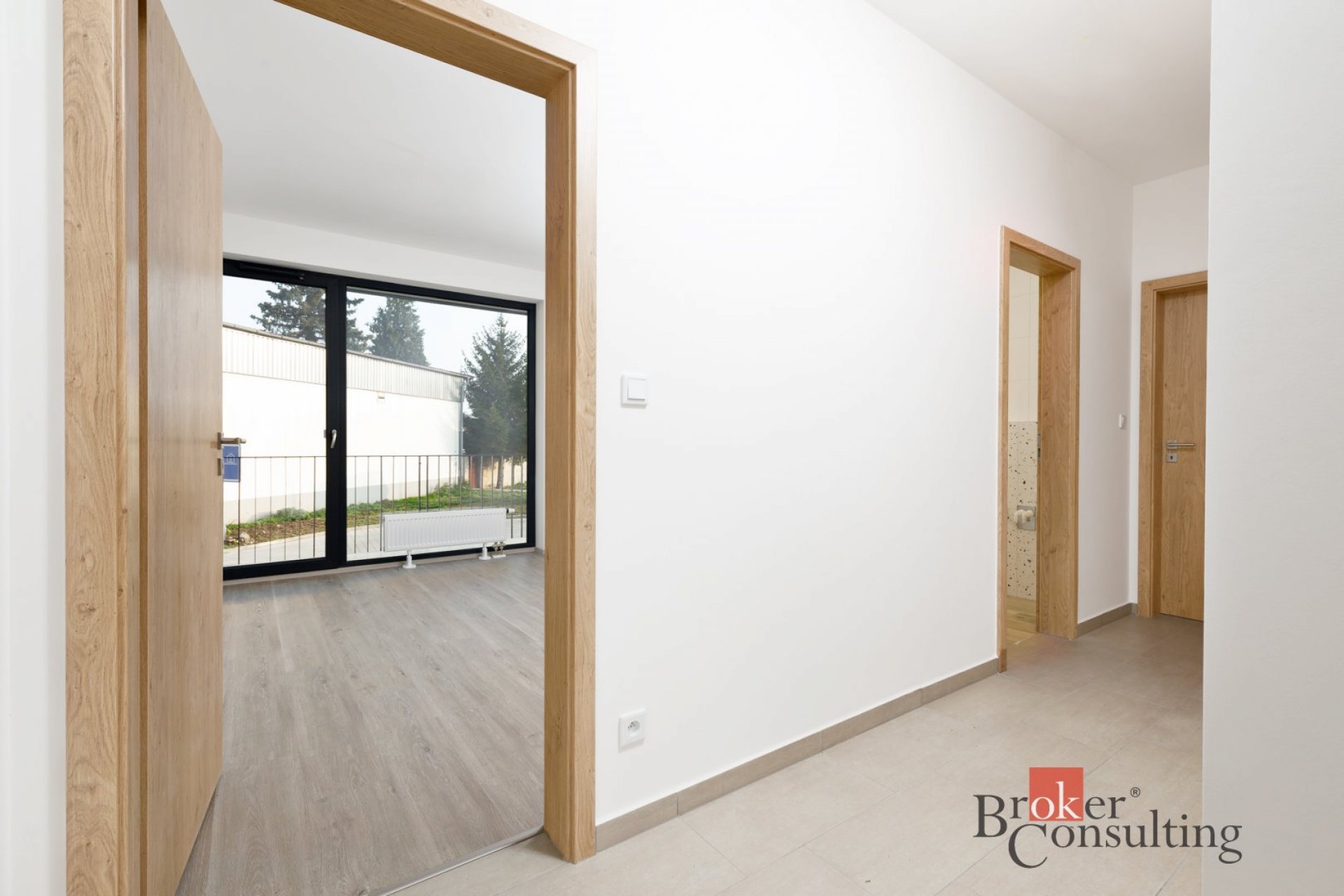 Byt je prakticky řešený a působí velmi příjemným a světlým dojmem. Dispozici tvoří vstupní chodba, koupelna se sprchovým koutem a toaletou, ložnice se vstupem na balkon a obývací pokoj s kuchyňským koutem, ze kterého je vstup na lodžii. Dva venkovní prostory poskytují ideální místo pro ranní kávu, odpočinek nebo posezení na čerstvém vzduchu.