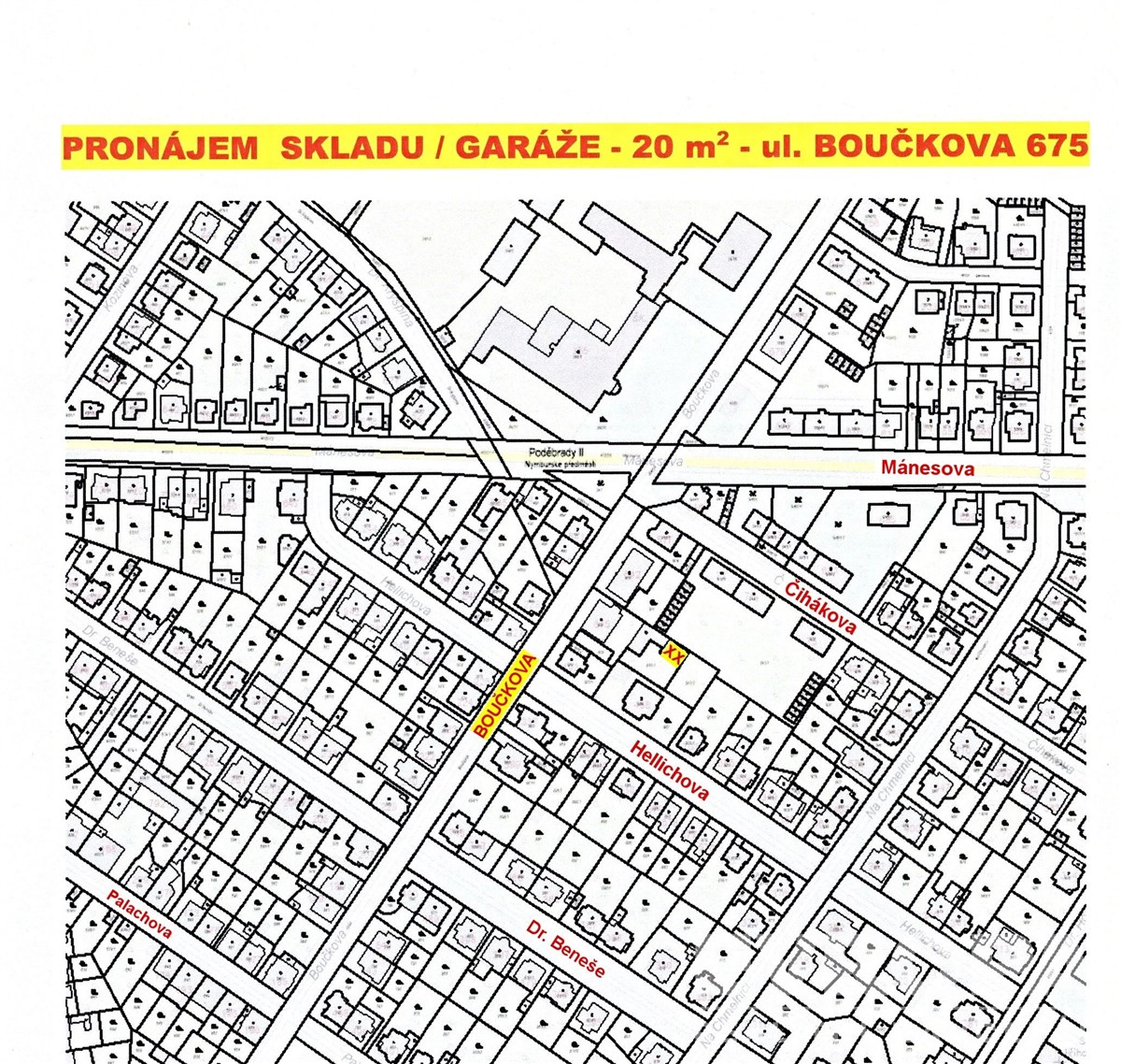 Nabízím pronájem skladového prostoru / garáže o výměře 20 m² v menším areálu v Poděbradech, ul. Boučkova 675. Dobrá poloha s výbornou dostupností k bytové zástavbě, nádraží i centru města.