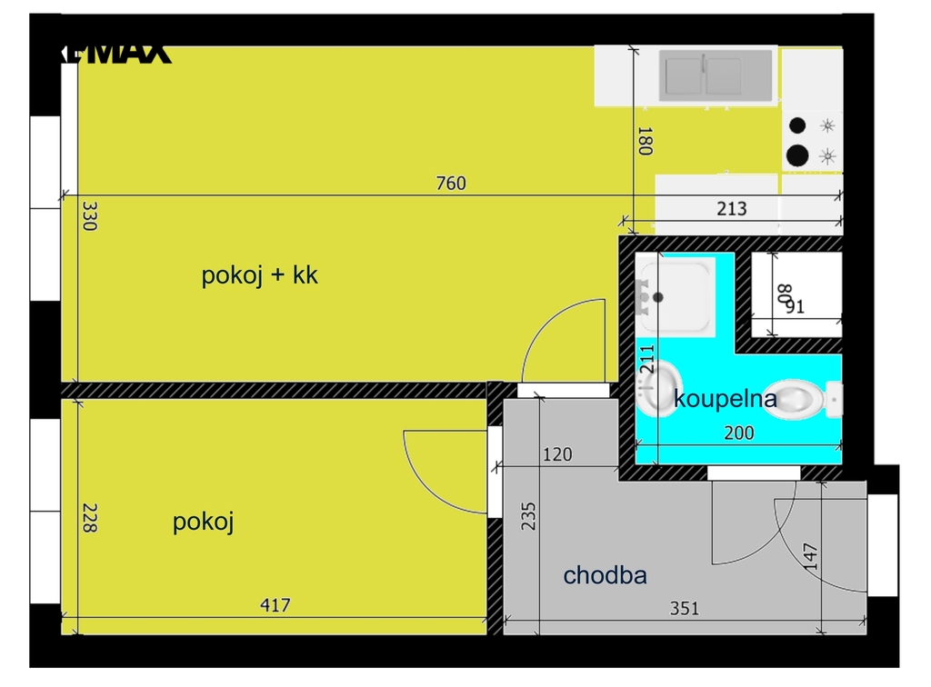 - Dispozice bytu: 2+kk