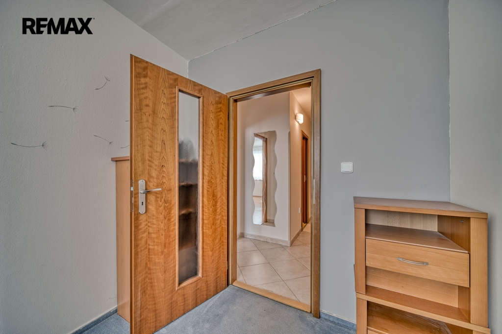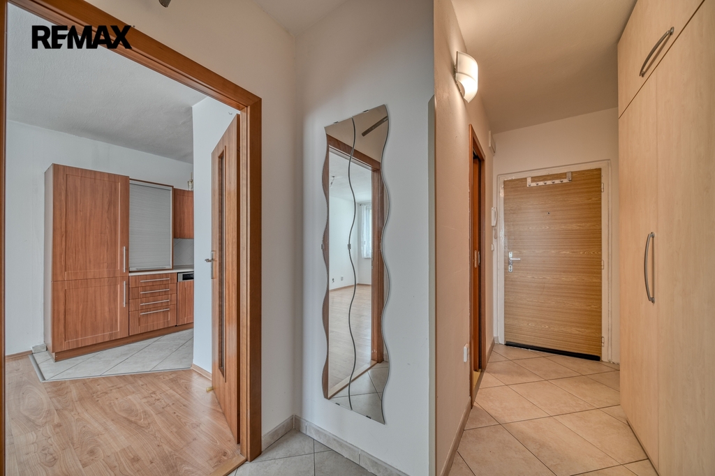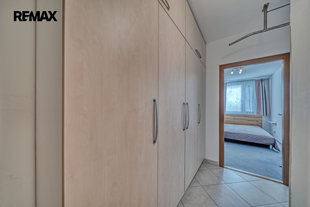 V chodbě jsou praktické vestavěné skříně, které poskytují dostatek úložného prostoru.