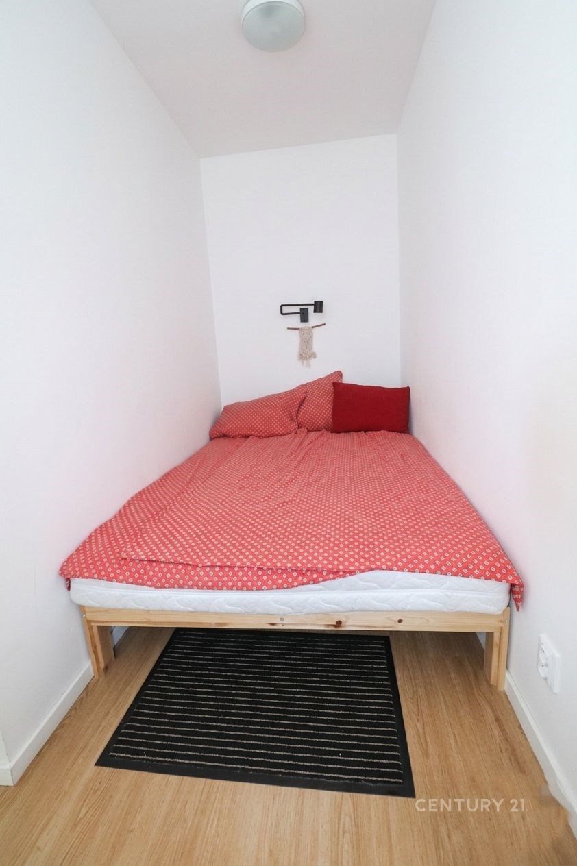 V bytě je kuchyňská linka se spotřebiči, šatní skříň v předsíni, dvojpostel a stolek pod televizi. V ceně nájmu je zahrnut internet.