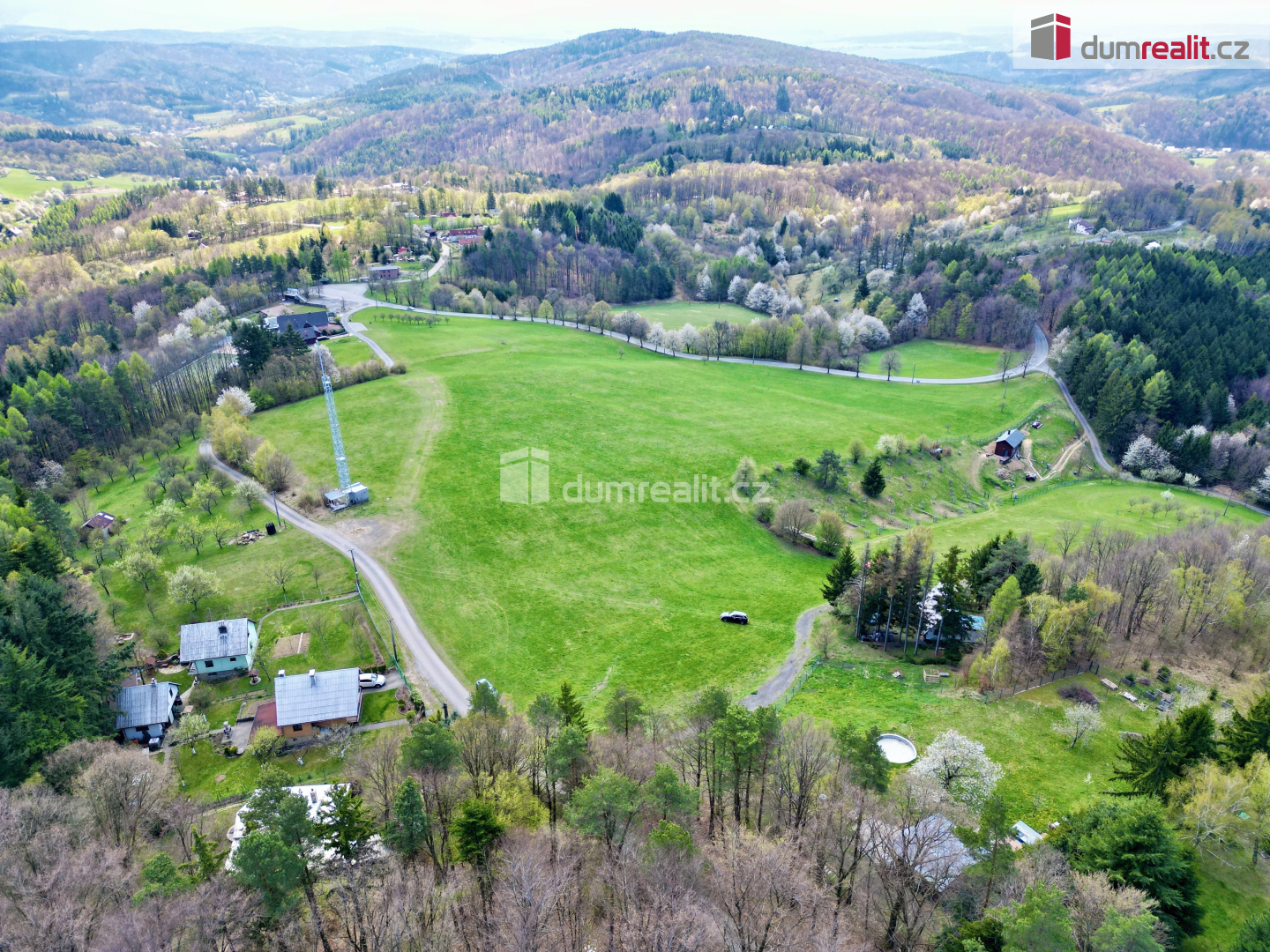 Příjezd k chatě je zajištěn po obecní komunikaci a dále po pozemku, kde je věcné břemeno jízdy a chůze, parkujete přímo u chaty.