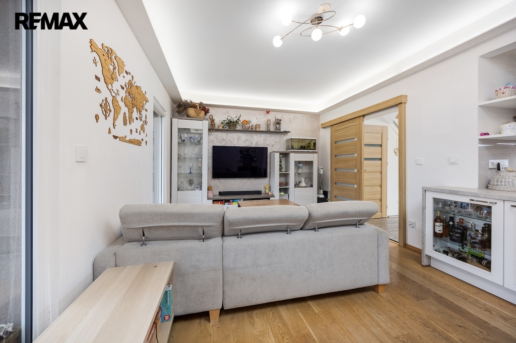 Kvalitní materiály: Dubové podlahy v obytných místnostech dodávají interiéru luxusní nádech.